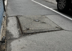 Trafficom-os fedlap lyukas (BKV forgalomirányító cége anno) a Szemere utcában.