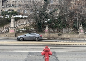 A tűzcsap fedele lejár, egy szál dróton fityeg.