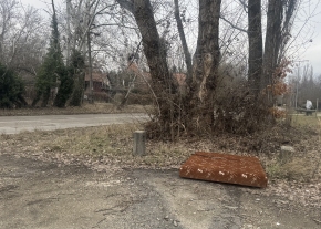 A Zápor utcában a Föld utcai saroktól nem messze fennmaradt a fán egy lomis tábla.