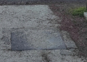 Megsüllyedt az aknafedél a Szent István kórház előtti járdán. Szintbe kellene hozni és a nagy repedést is el kellene tűntetni!