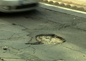 Balesetveszélyes kátyú, a Práter utcában