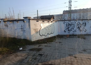 Az ESMA villanyoszlopos reklámtáblája össze lett firkálva.