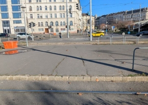 2021 tavaszán kijavították a megsüllyedt járda alapját, de a feltört aszfalt pótlására azóta sem került sor.