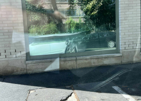 A járda mindkét csapadékvíz-elvezetője tele van hordalékkal, piszokkal, az egyik rács már nincs is a helyén.