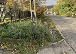 Hiányzó járda a Kamaraerdei úton