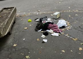 Védetlen, pusztuló ágyás és úttestre benyúló bokor