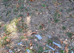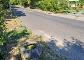 Bútor- és üveghulladék a járda és a temető kerítése között