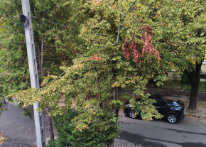 parkoló autókat, gyalogosokat veszélyeztető faág