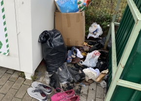 Szétdobált ruhák és hulladék az uszodánál