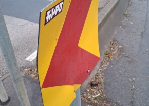 Sérült, elforgatott tábla
