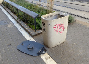 Szemetes kuka teteje le lett tépve