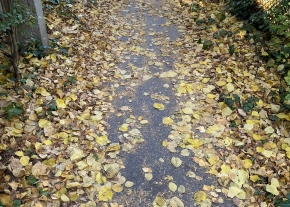 Falevelek eltakarításának kérése a járdáról