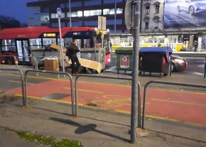 Buszmegálló betört üveg
