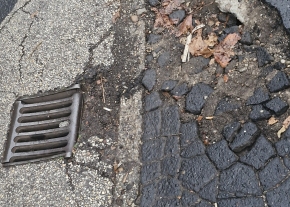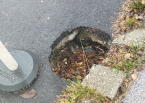 A víz alámossa az utat, és az árok falazatát, rövidesen be fog szakadni. Érdemes lenne még azelőtt javítani ezt a hibát, mielőtt személyi sérülés, vagy komolyabb anyagi kár történne.