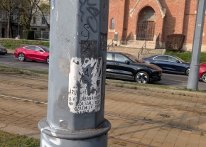 Graffiti a buszmegállón a Csonkatorony utca megállóban.
