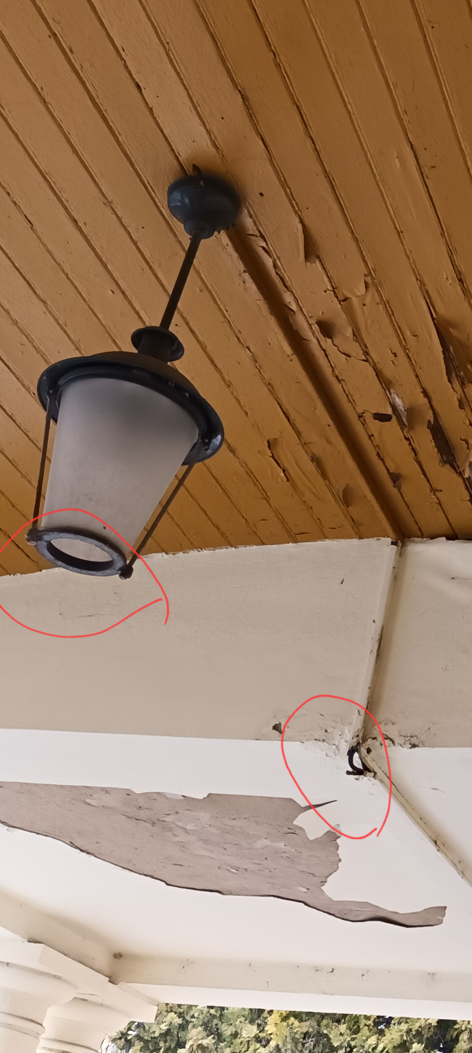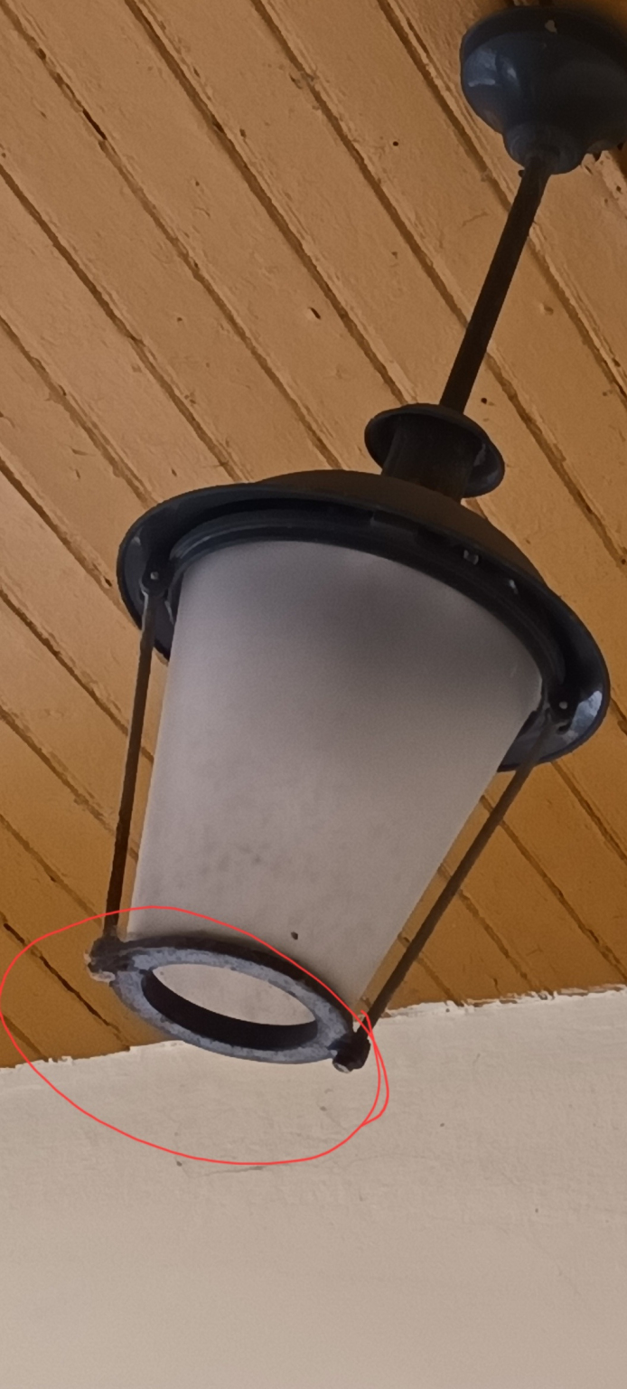 A nemrégiben kijavított lámpatest aljáról egy díszes fedőlap hiányzik és sérült a vezeté...