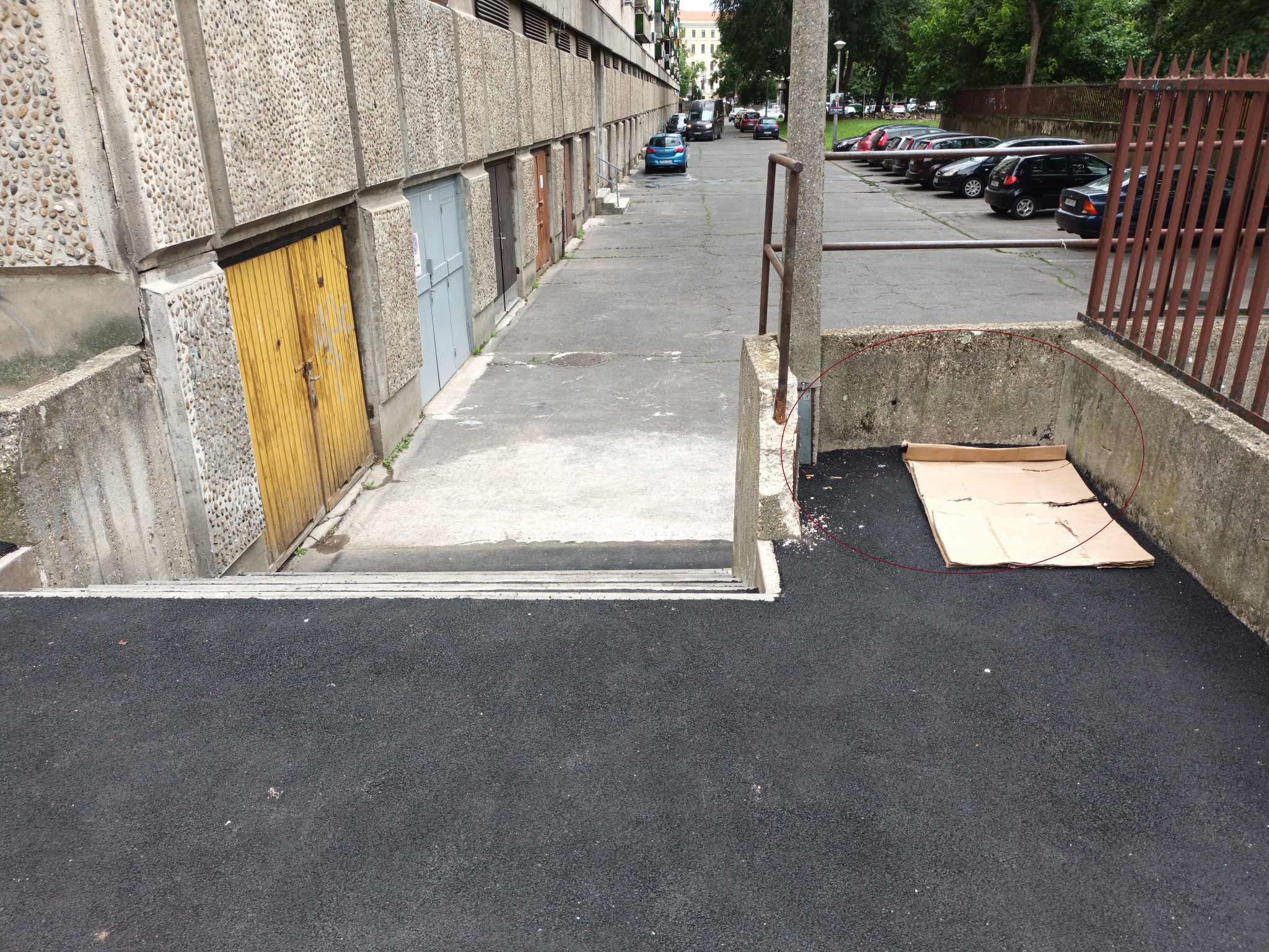 Mellékelek egy pár képet hogy pontosan hol található a kiszélesítendő lépcső, az áthelyezendő közvilágítás és hogy mit szoktak maguk után hagyni a hajléktalanok abban a bizonyos "zugban".