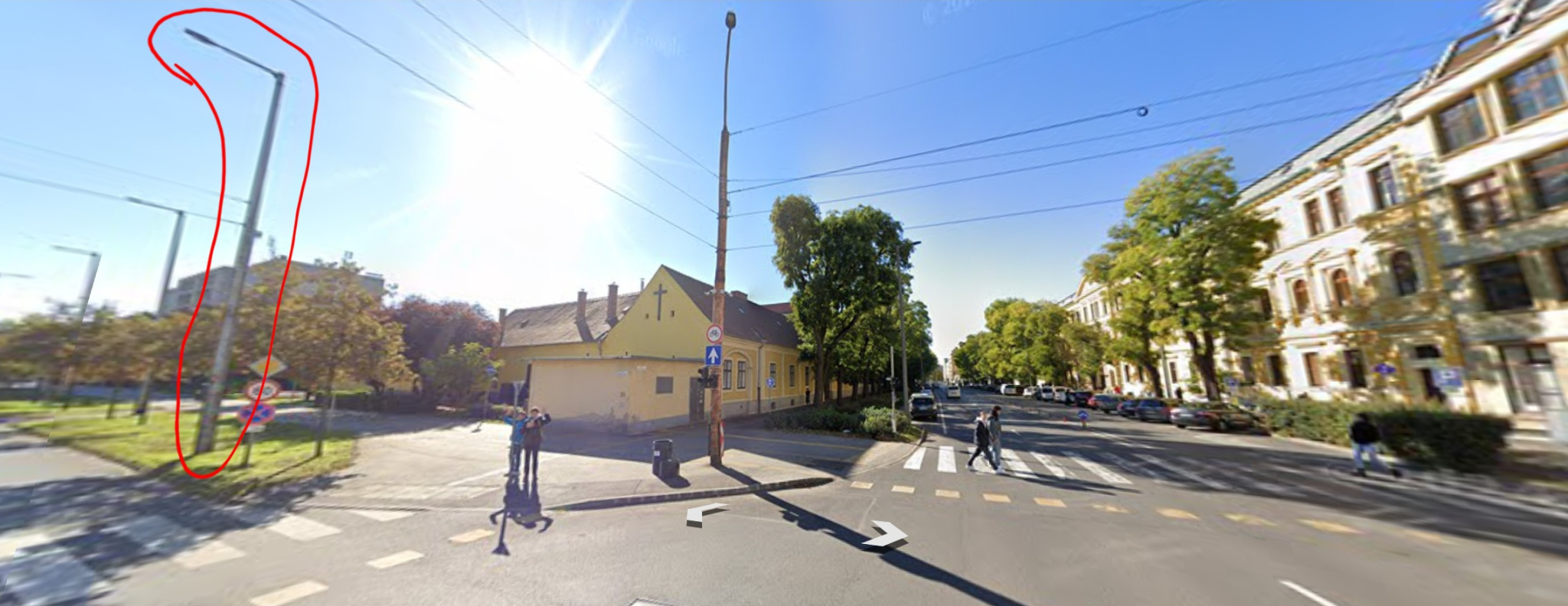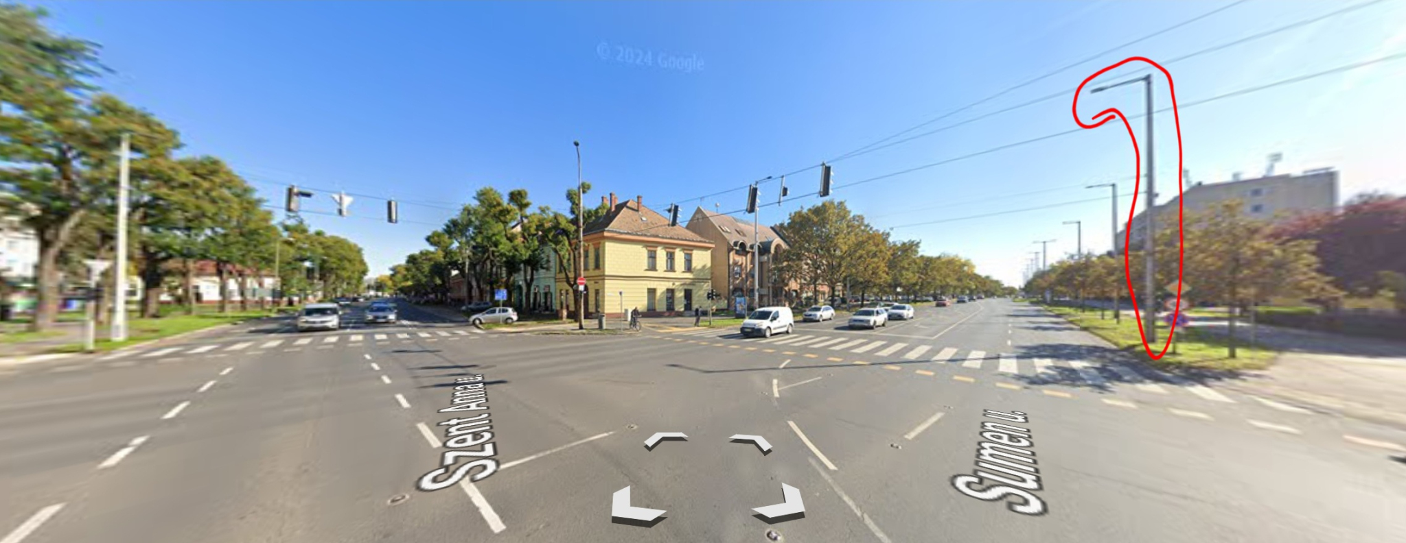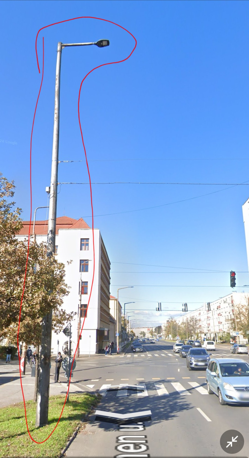 A Klaipeda utca Sumen utca és a Szent Anna utca kereszteződésében a Sumen utca két oldalát összekötő gyalogos átkelőhely melleti lámpaoszlop világítása nem működik.