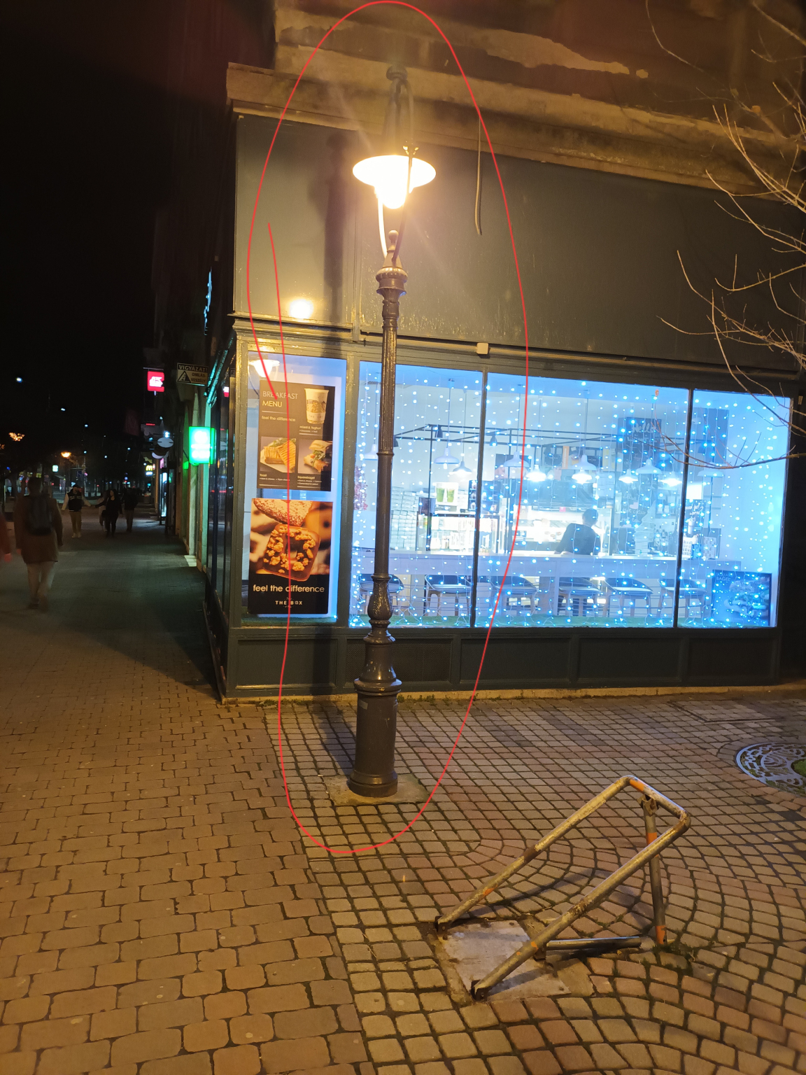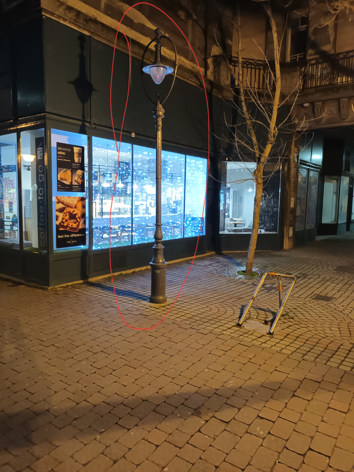 „Az egyik lámpa oszlop világítása meghibásodott, pislogni kezdett.