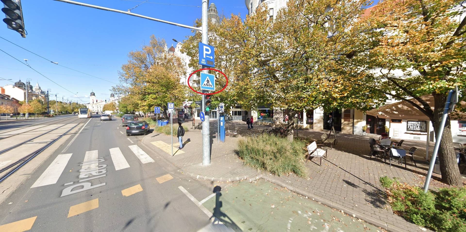 Hibás kijelölt gyalogos átkelőhely Kresz tábla világítás