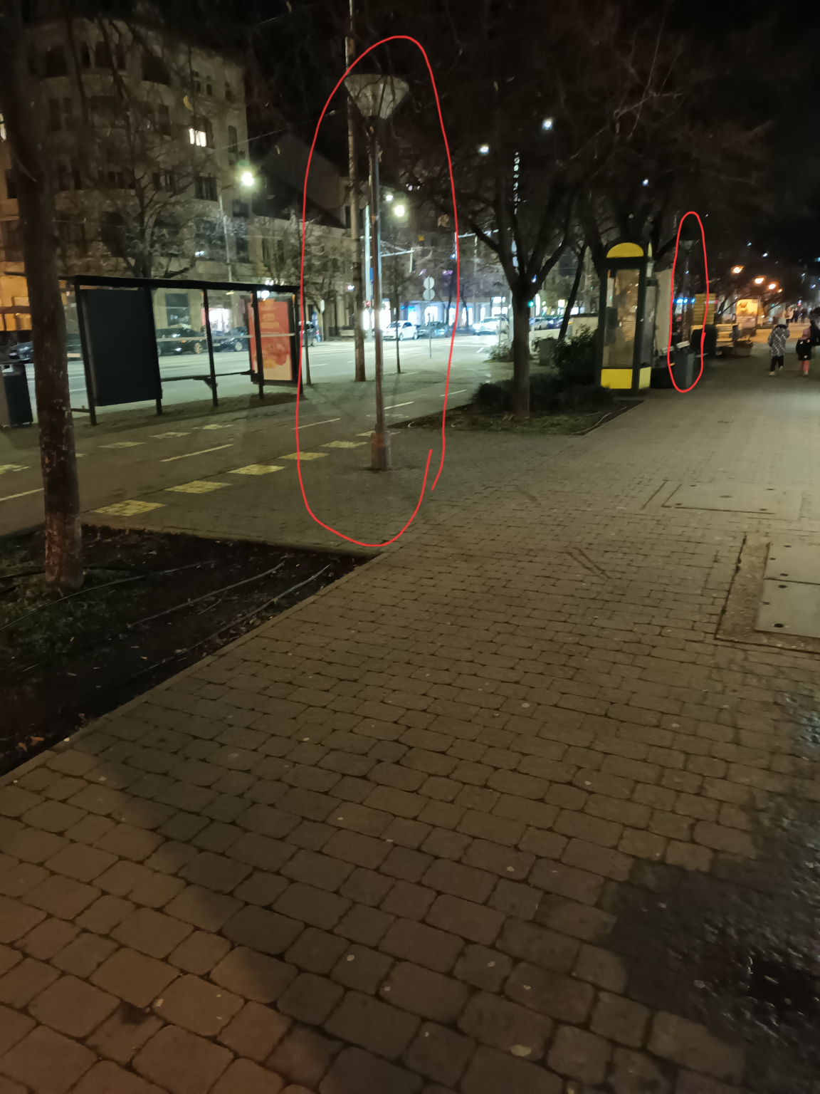 A Piac utca 39/A közelében lévő két egymásutáni járdán lévő közvilágító oszlop nem világít.