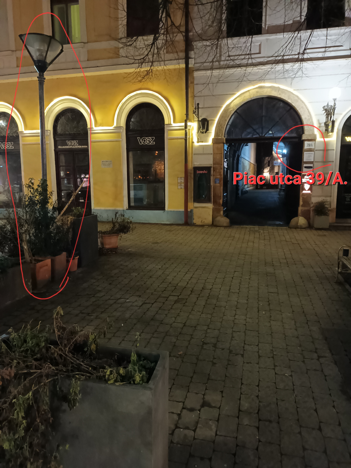 Piac utca 39/A közelében nincs közvilágítás