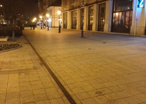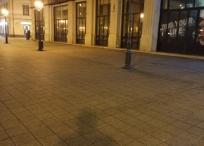 A Hotel Arany Bika közelében, a Debreceni "Sár hidat" bemutató talajba süllyesztett vitrintől nem messze lévő lámpaoszlop világítása nem működik.