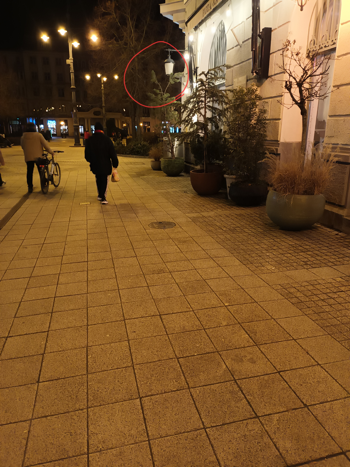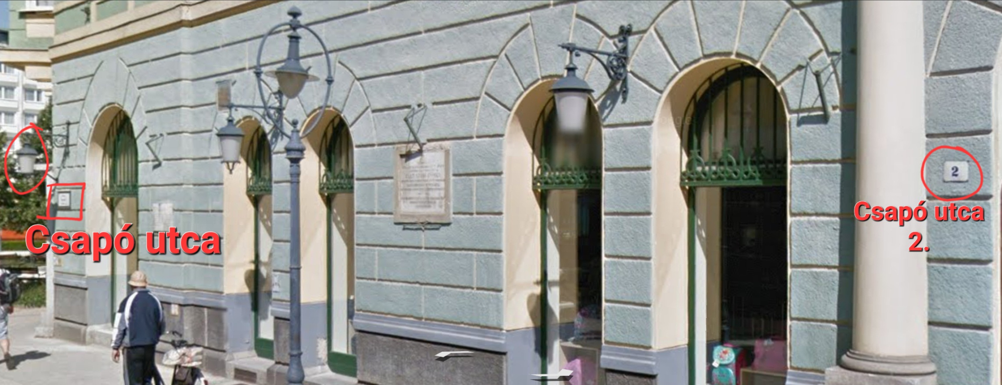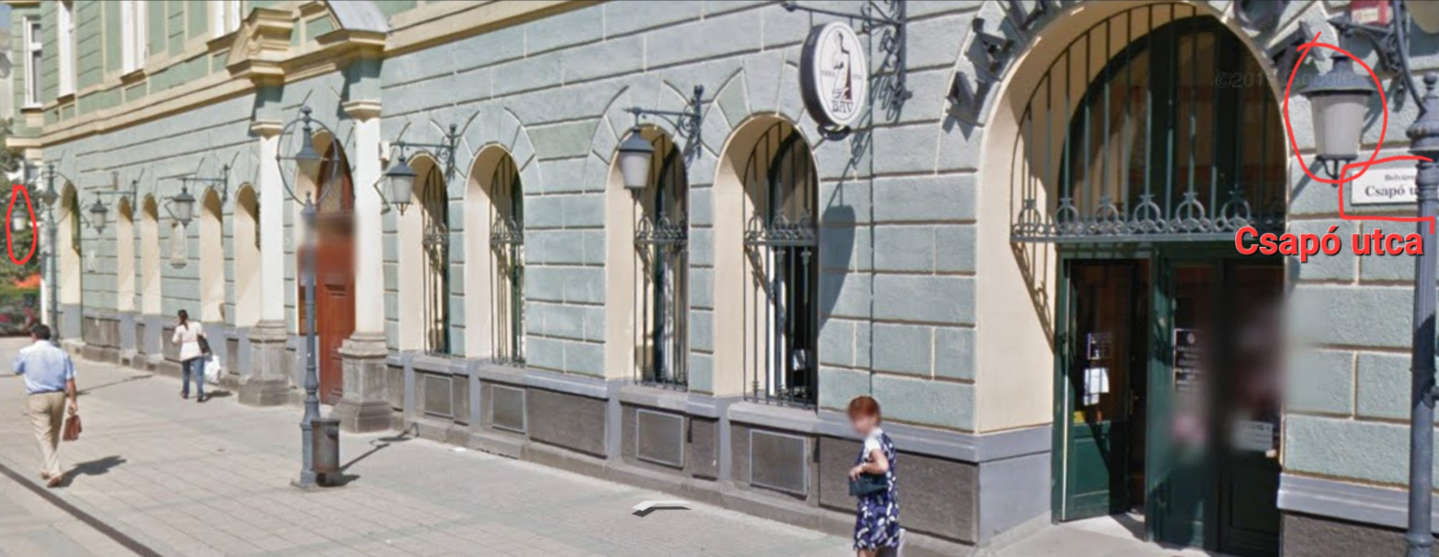 A Csapó utca és Poac utca sarkán lévő Csapó utca 2. szám alatti ház Csapó utcai oldalán lévő falikarok közül a legelső és a legutolsó nem világít.