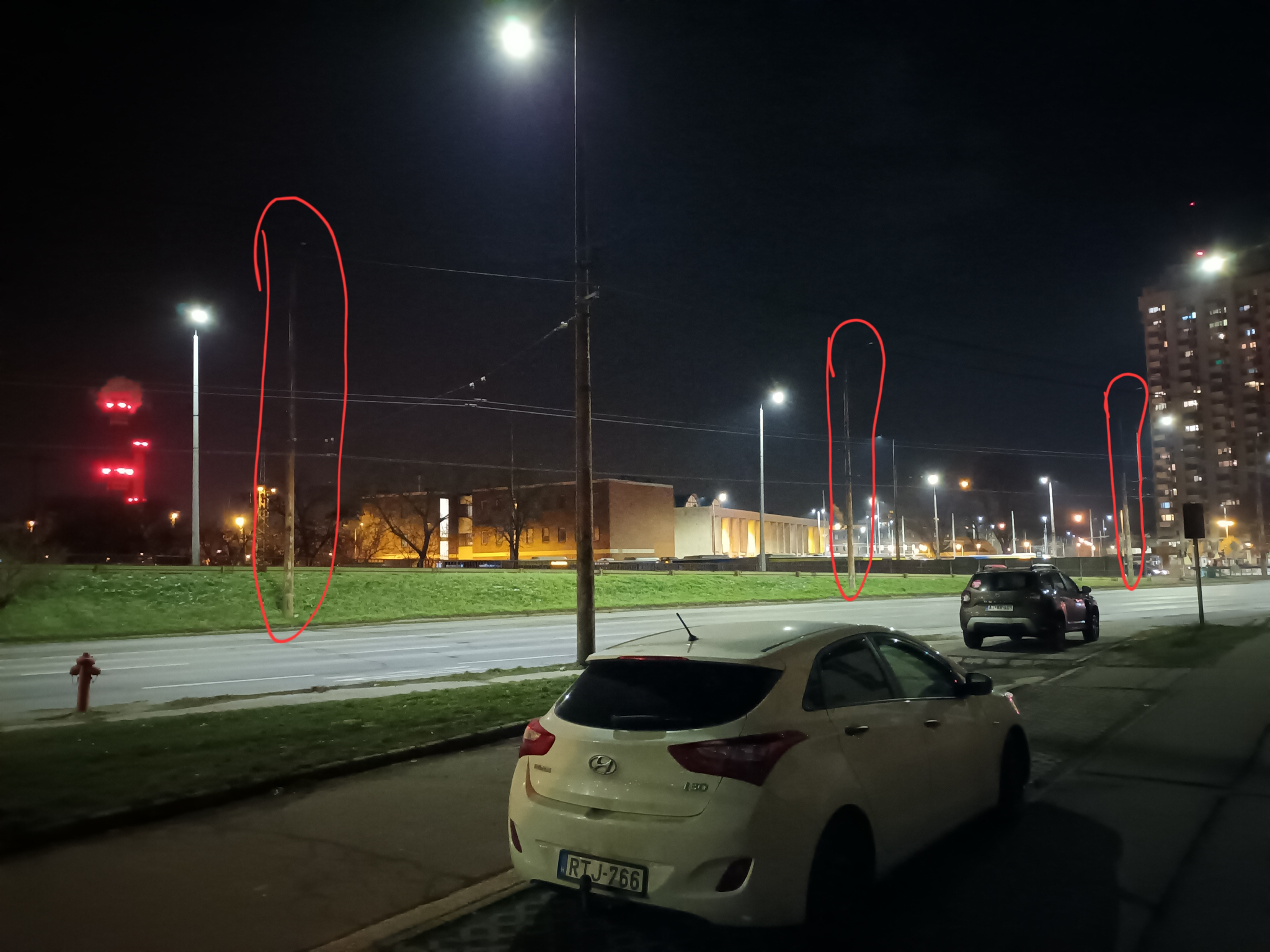 A Wesselényi utcán a 97-es számozású lámpaoszloptól a 114-es számozású lámpaoszlopig lévő lámpaoszlopok közül csak egy-kettőnek működik a világítása.