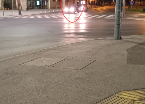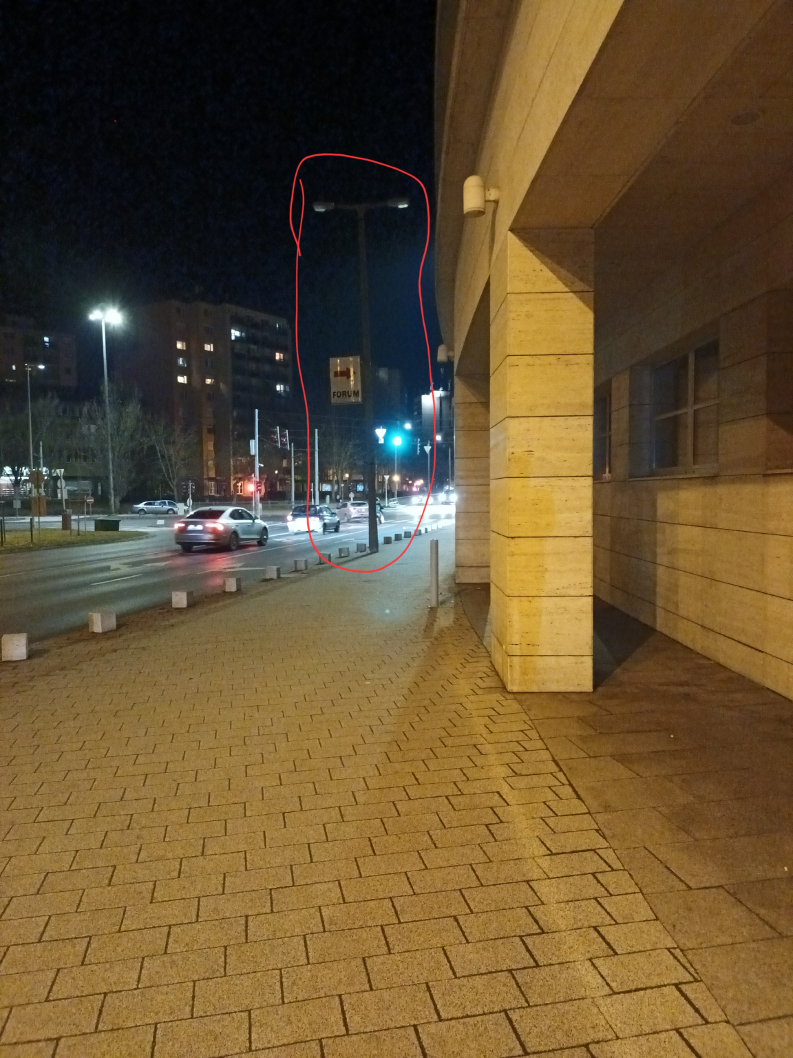 A Bethlen utcának a Hunyadi János és a Múzeum utca közti szakaszán a Hnyadi János utca felől az első kétfejes beton lámpaoszlop világítása nem működik.