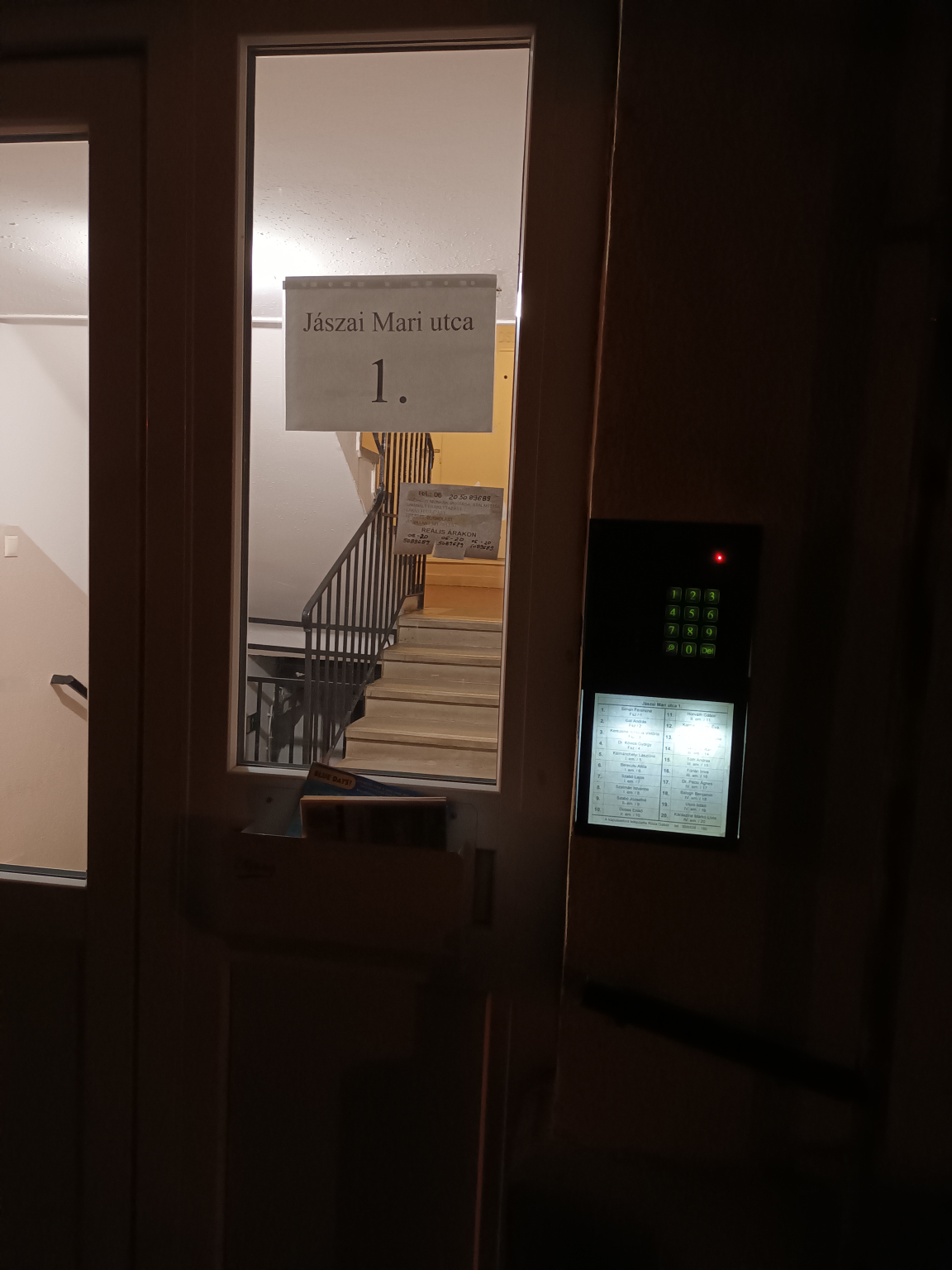 A Jászai Mari utca 1. szám alatti lépcsőház bejárati ajtaja előtti közvilágítás nem működik.