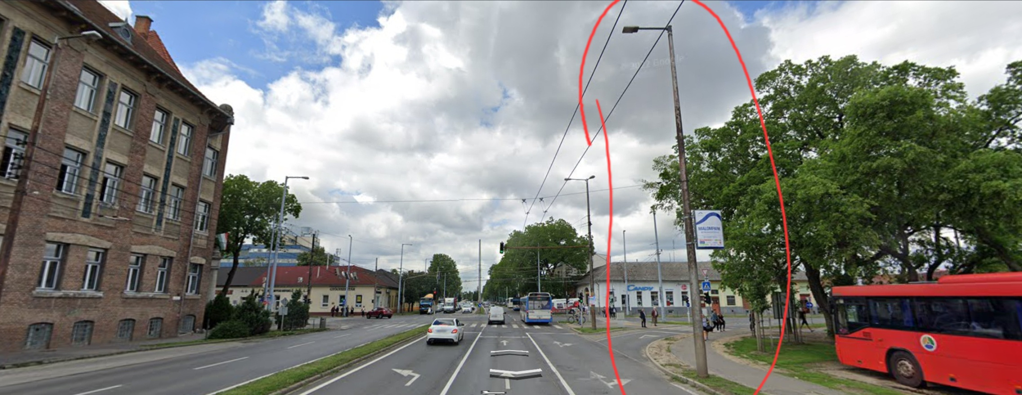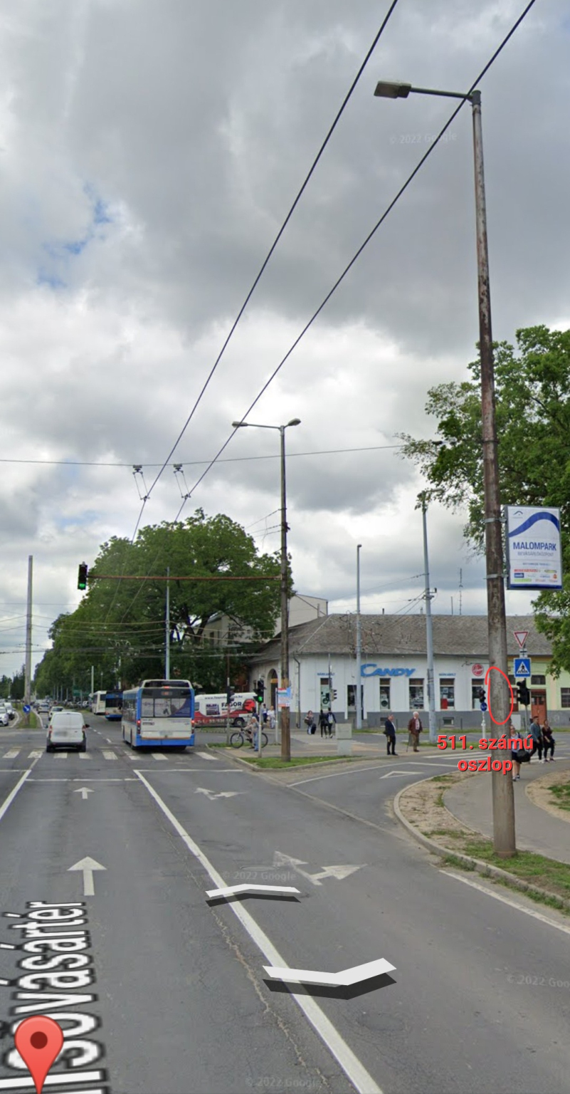 A Nyugati utca, Széchenyi utca és Külsővásártér kereszteződésétől nem messze az 511. számú oszlop világítása nem működik.