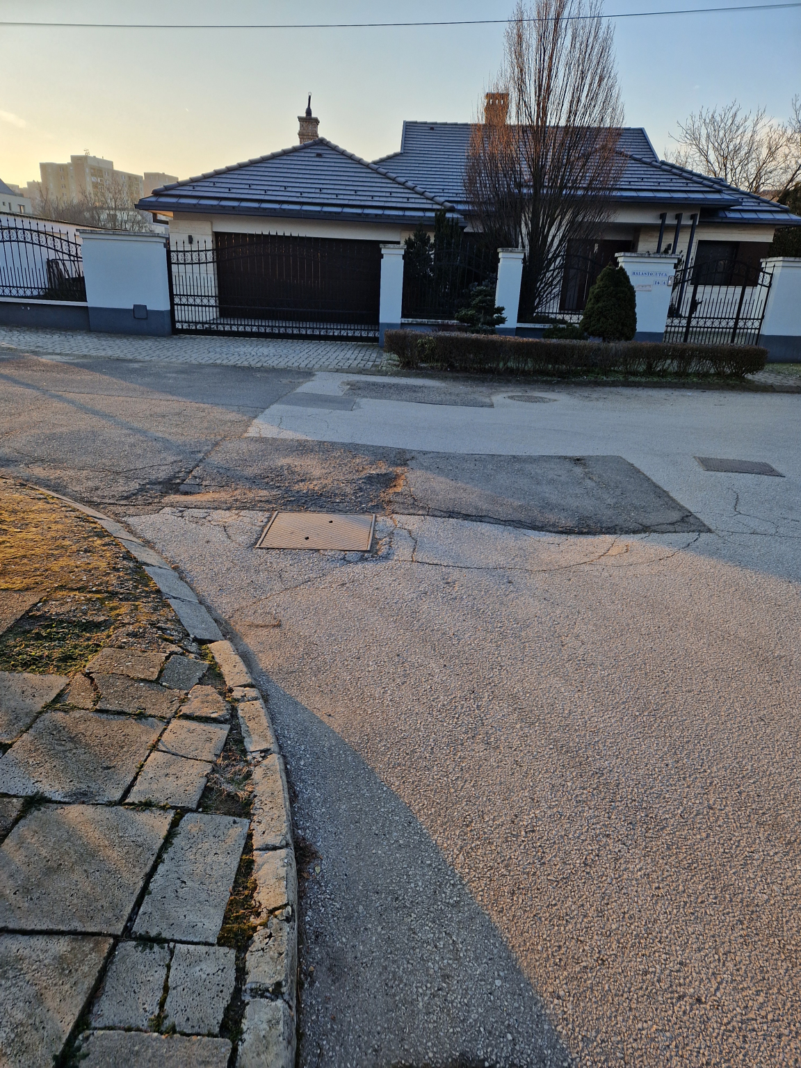A sarkon mar tobbszor javitottak az uttestet, de most tobbszorosen be van sullyedve, felelmetes rajta athajtani autoval.