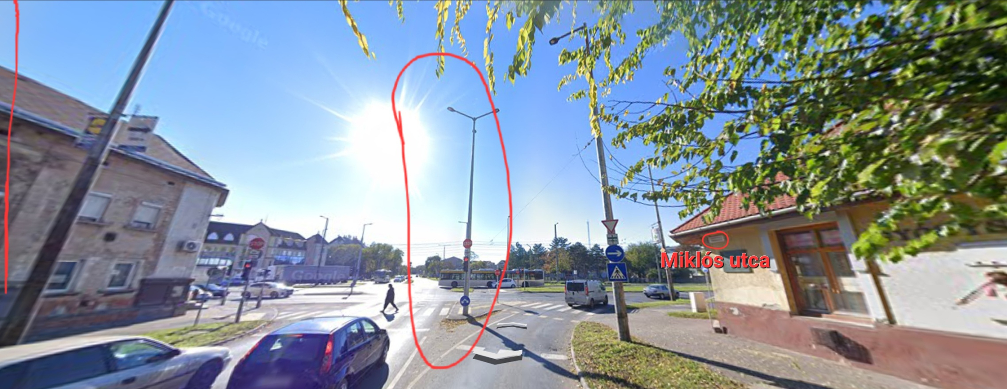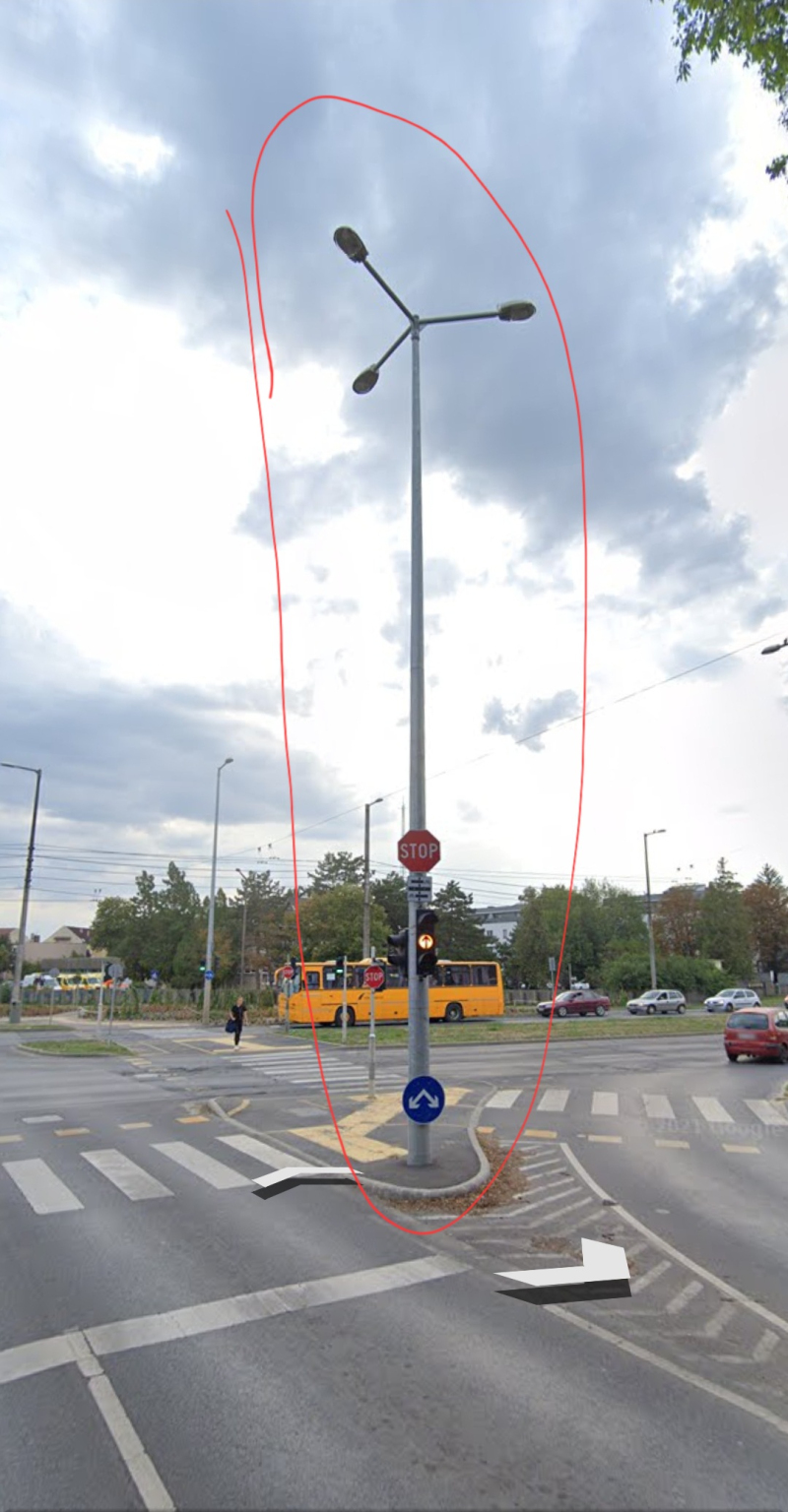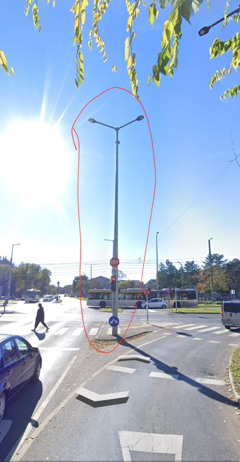 A Miklós utca, Szoboszlói út, Külsővásártér és Erzsébet utca kereszteződésében az egyetlen 3 lámpafejes lámpának az egyik lámpafeje nem világít.