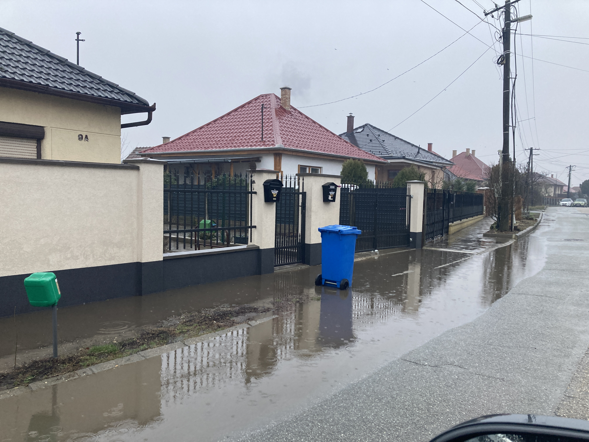 Gergely utca 9 szám előtt található utcai víznyelő eldugult, járhatatlan a járda és a fél úttest.