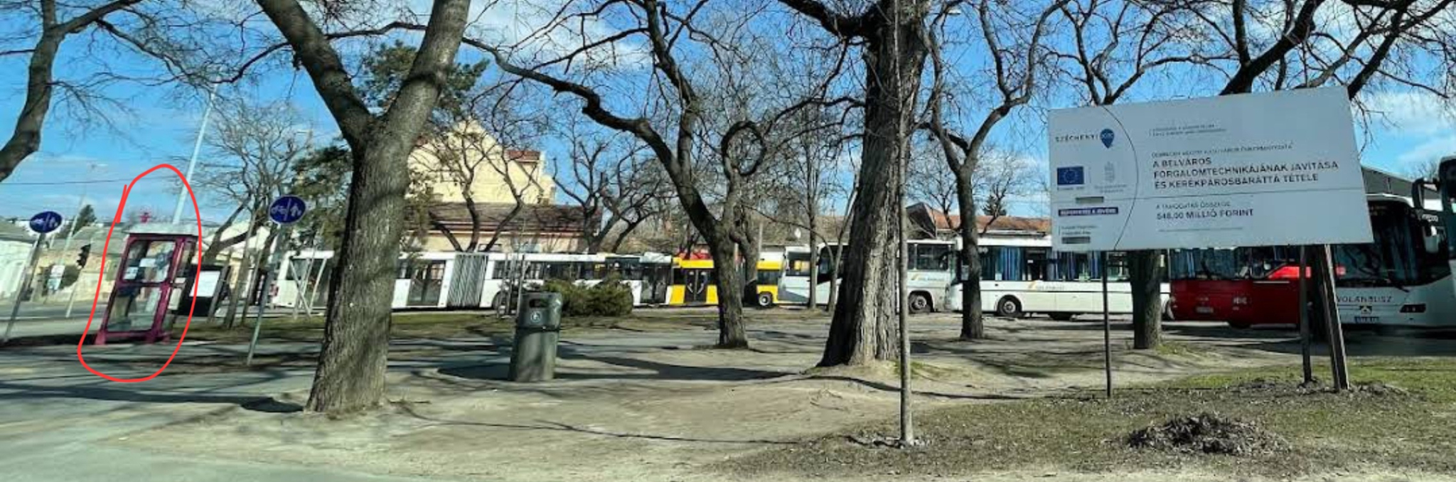 A Külsővásártéri Autóbuszállomás közelében a Külsővásártér, Nyugati utca és Széchenyi utca kereszteződésétől nem messze a Külsővásártérről a Széchenyi utcára jobbra kanyarodó dorgalmi sáv melletti járdán megtalálható nyilvános telefonfülke világítása nem működik.