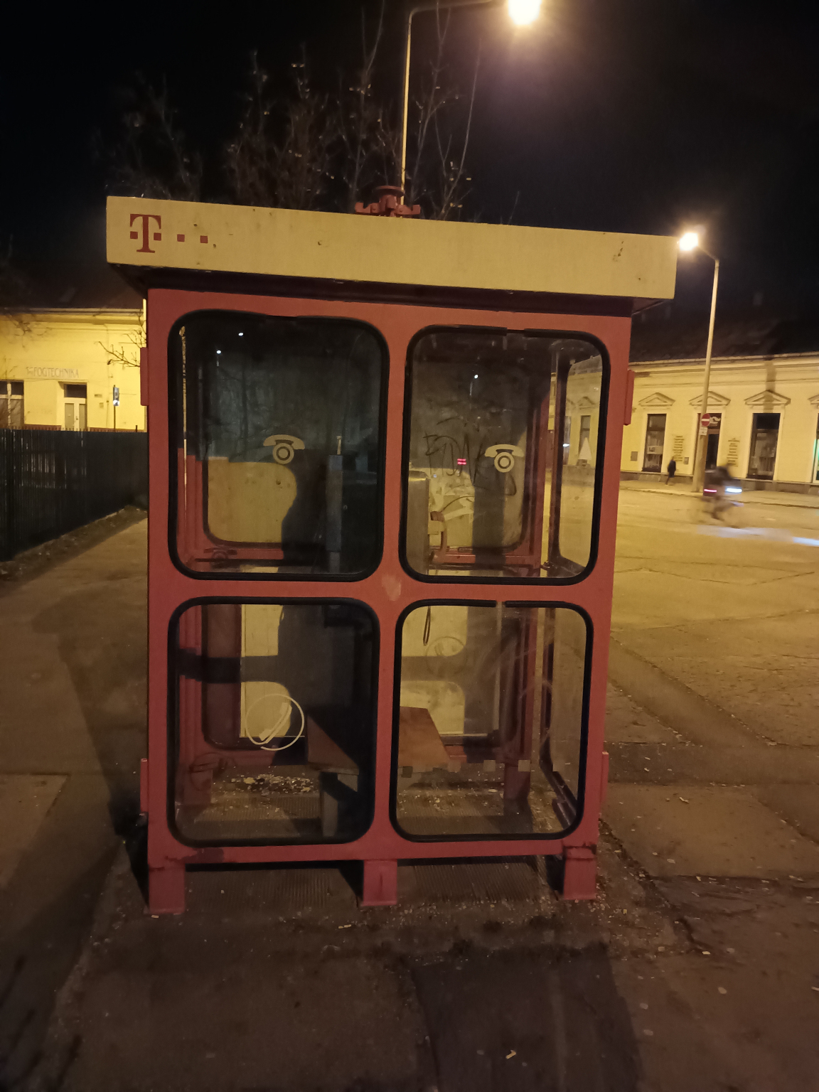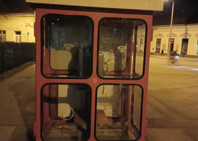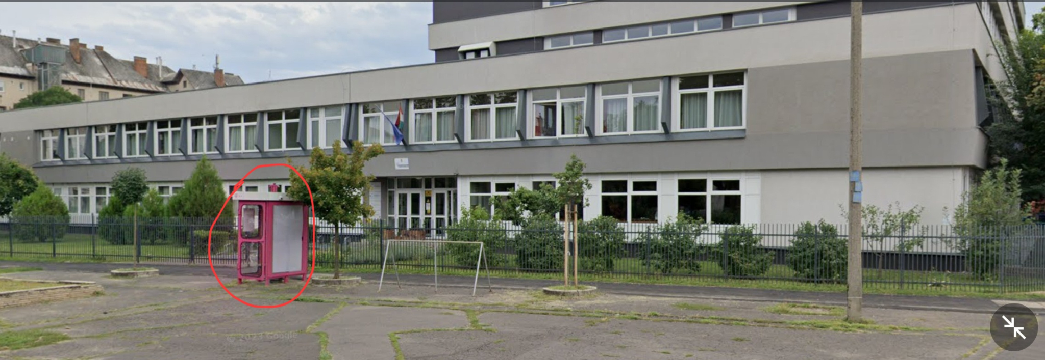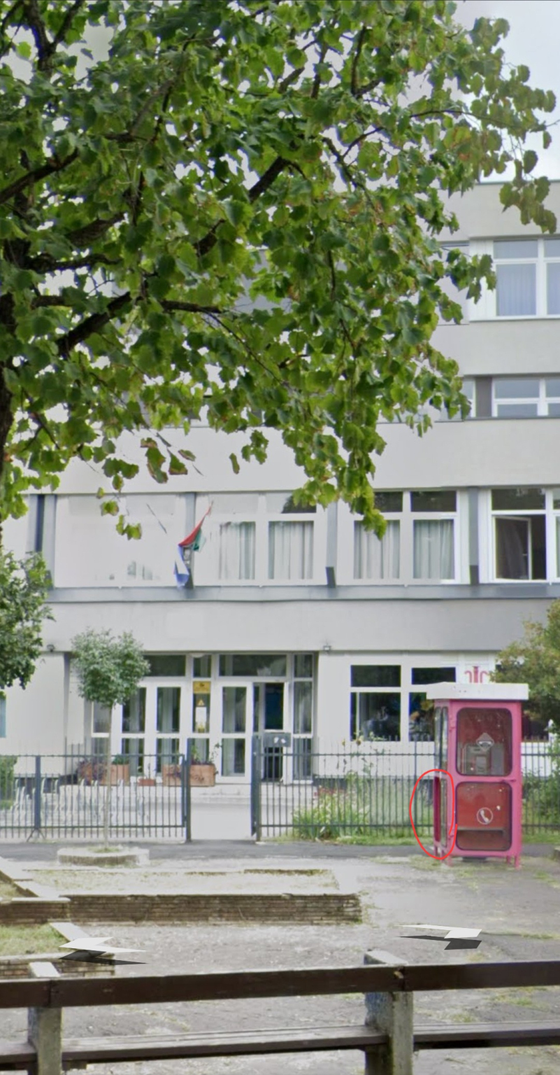 A Bocskai téri Debreceni Benedek Elek Általános Iskola bejárata közelében lévő nyilvános telefonfülke világítása nem működik és az egyik ablaka hiányzik.