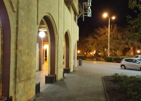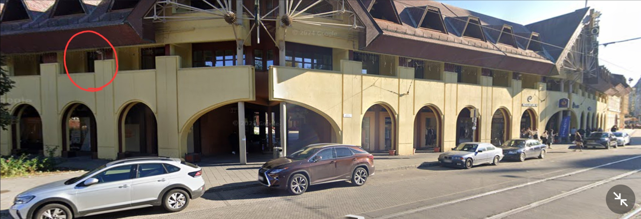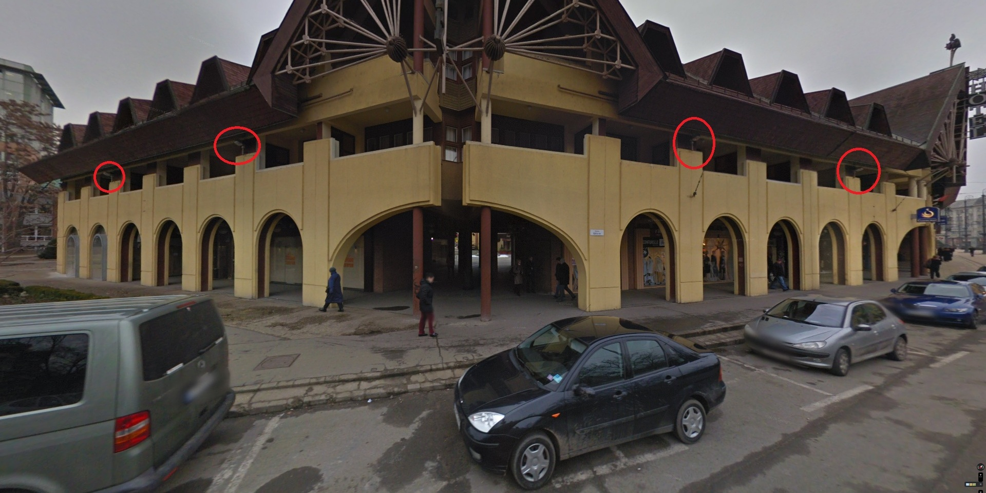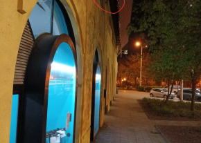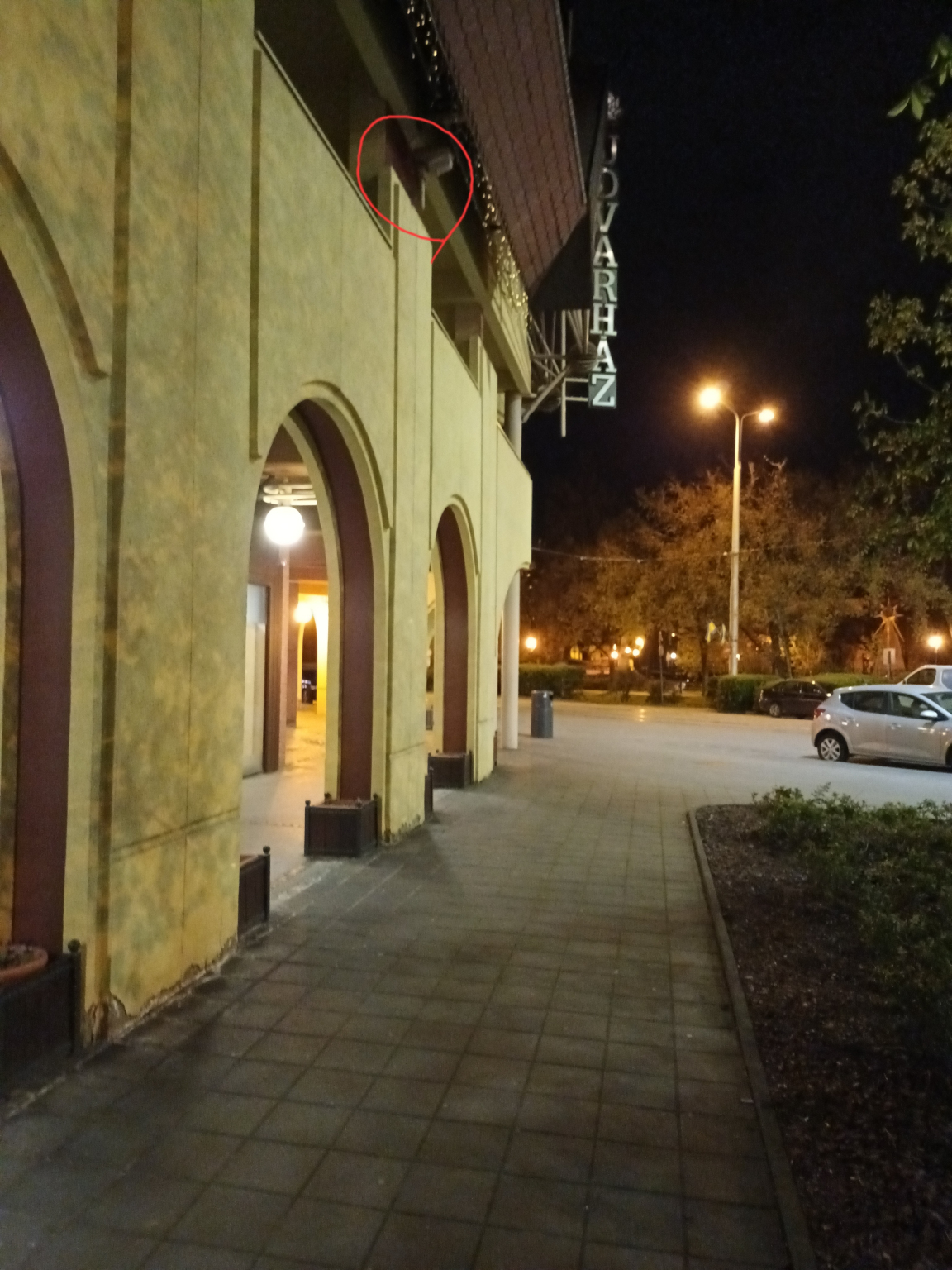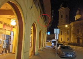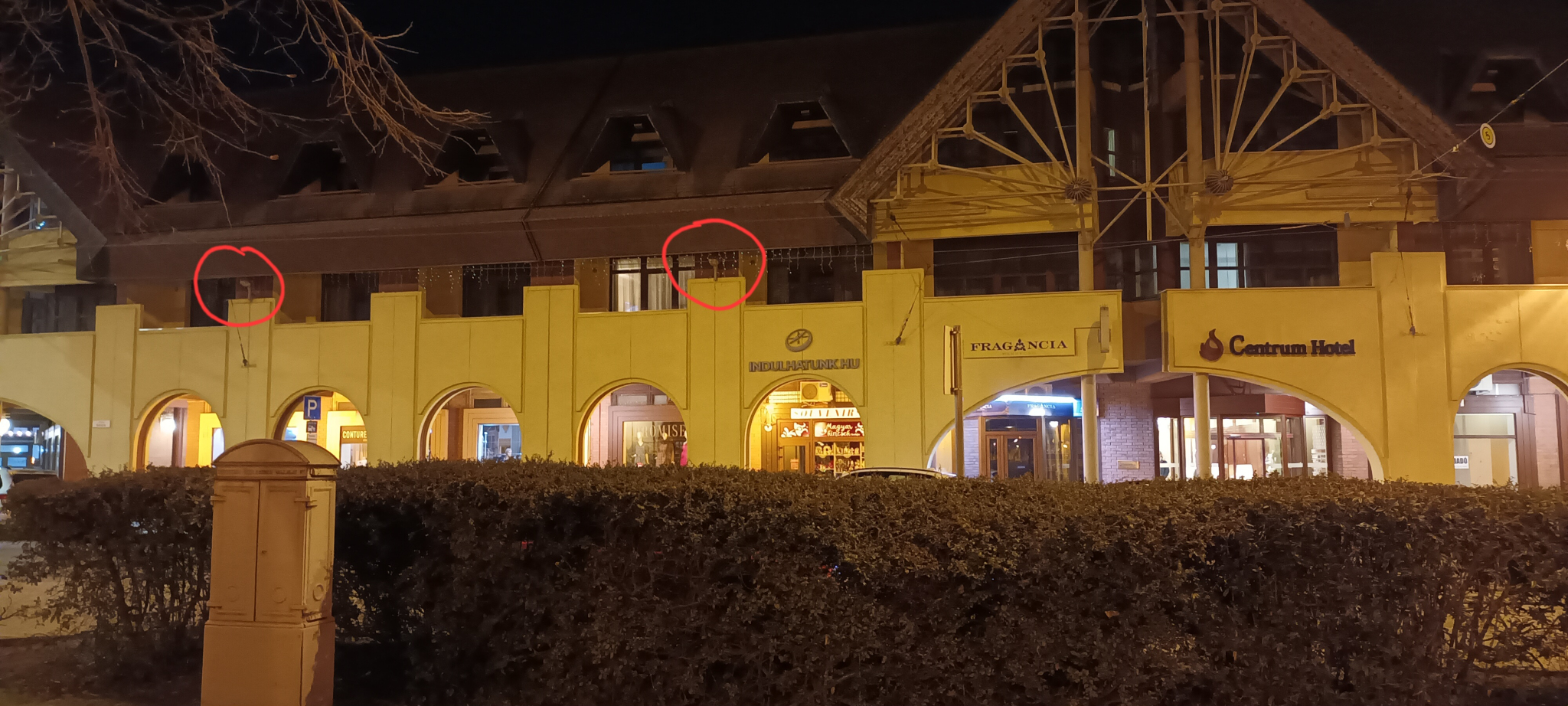A Kálvin téri Udvarház épületének a villamossínekre néző oldalán lévő 4 egymásutáni falikar nem világít.