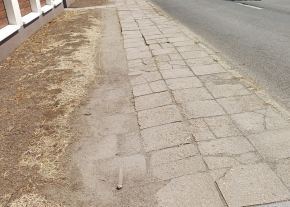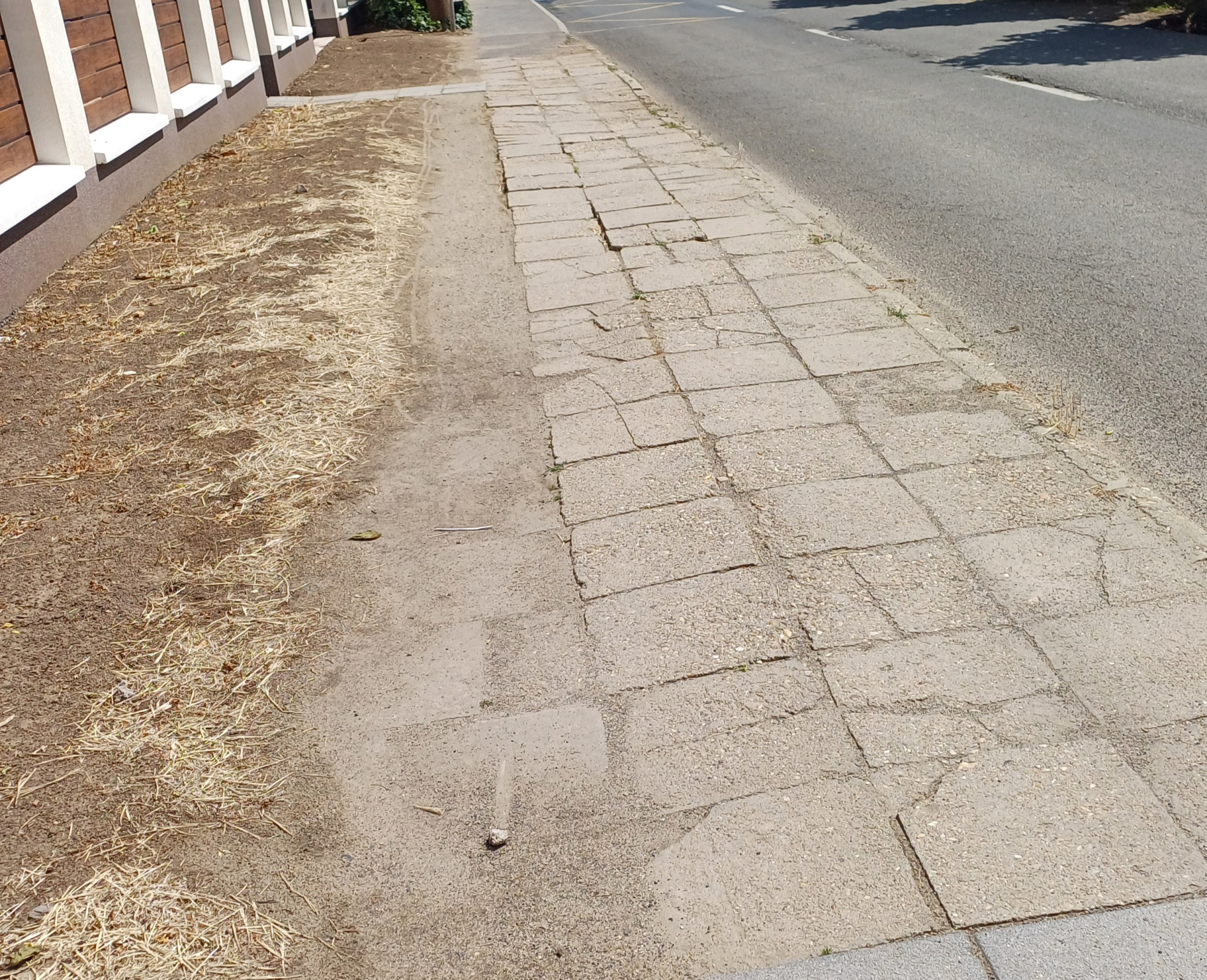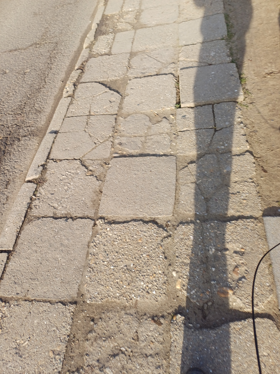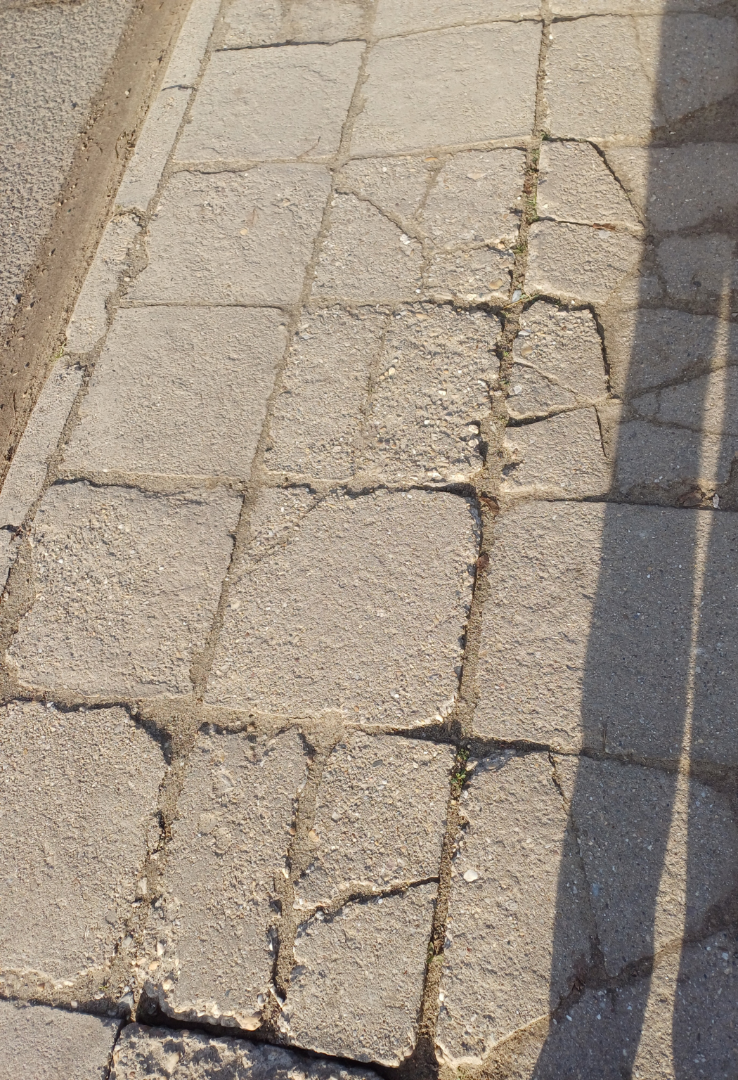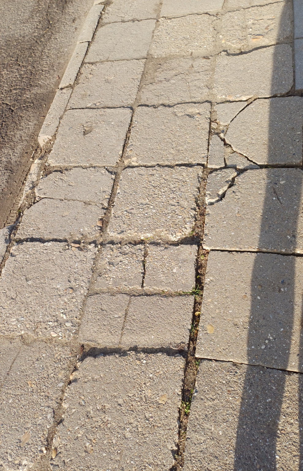 Széttörtek a járólapok az Alsójózsai utcán egy kb 20 méteres szakaszon, a térképen is jelölt helyen.