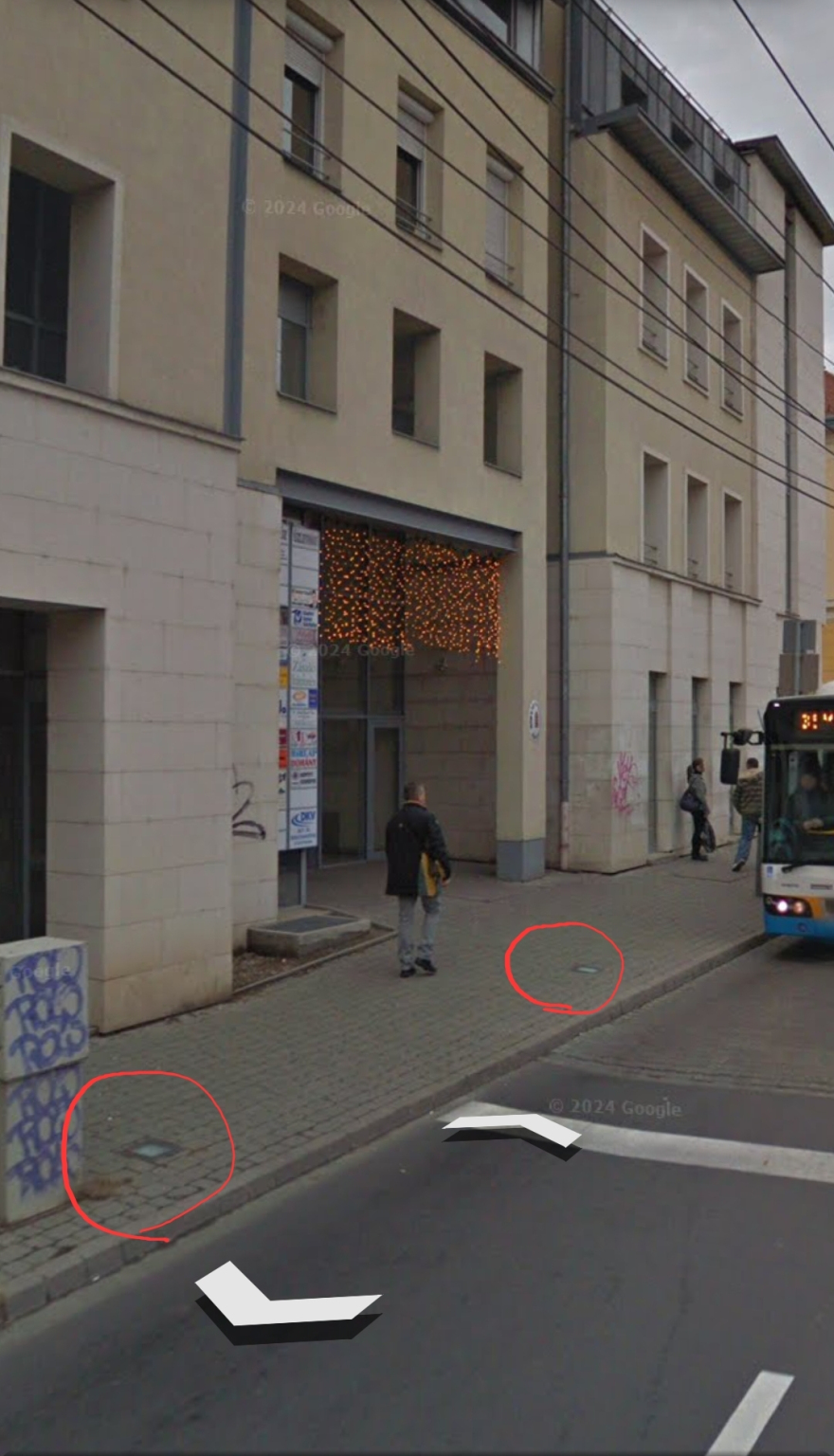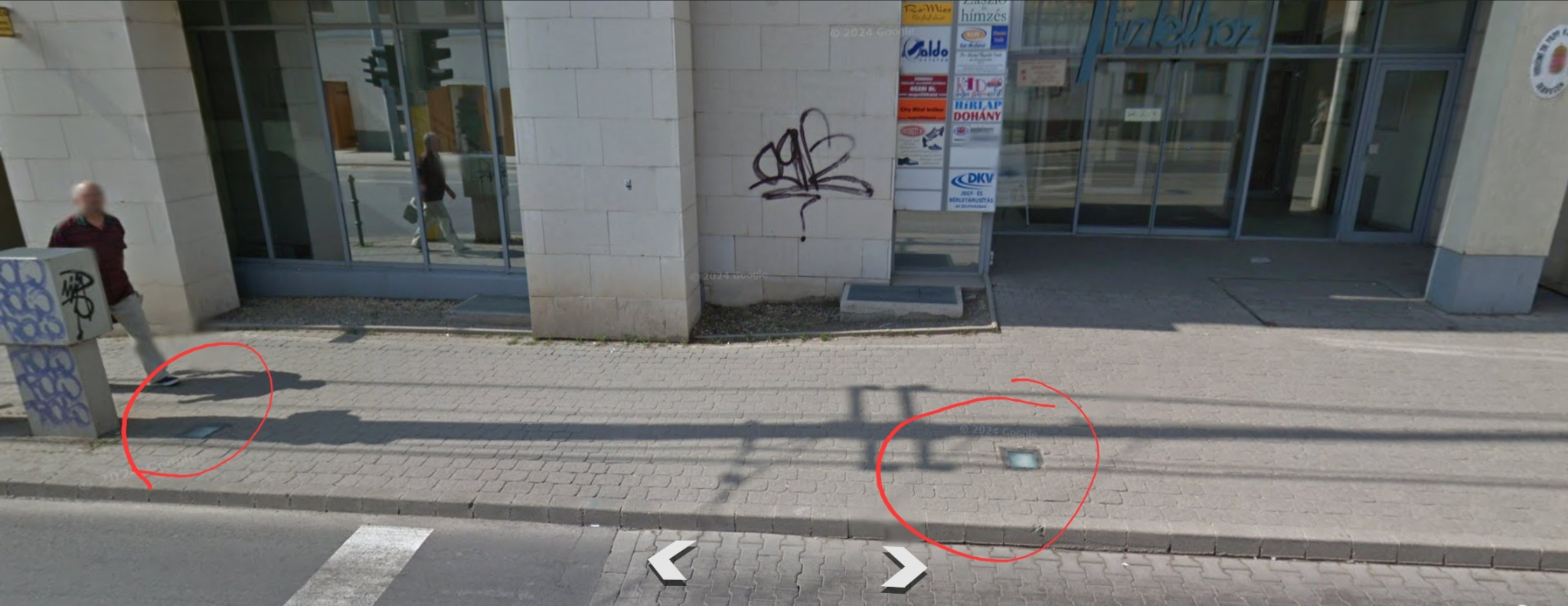 A Széchenyi utcán a Hal köz Üzletház előtti járdán és a Hal köz Üzletház Mélygarázs lehajtó előtti járdán lévő talajba süllyesztett világítás nem működik.