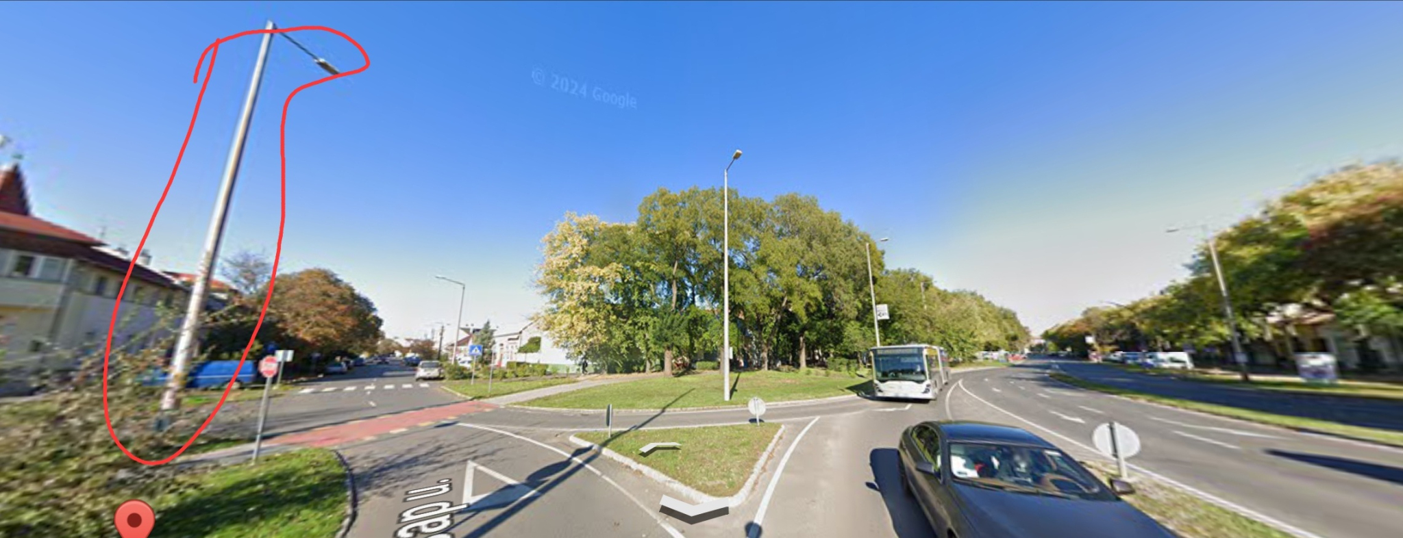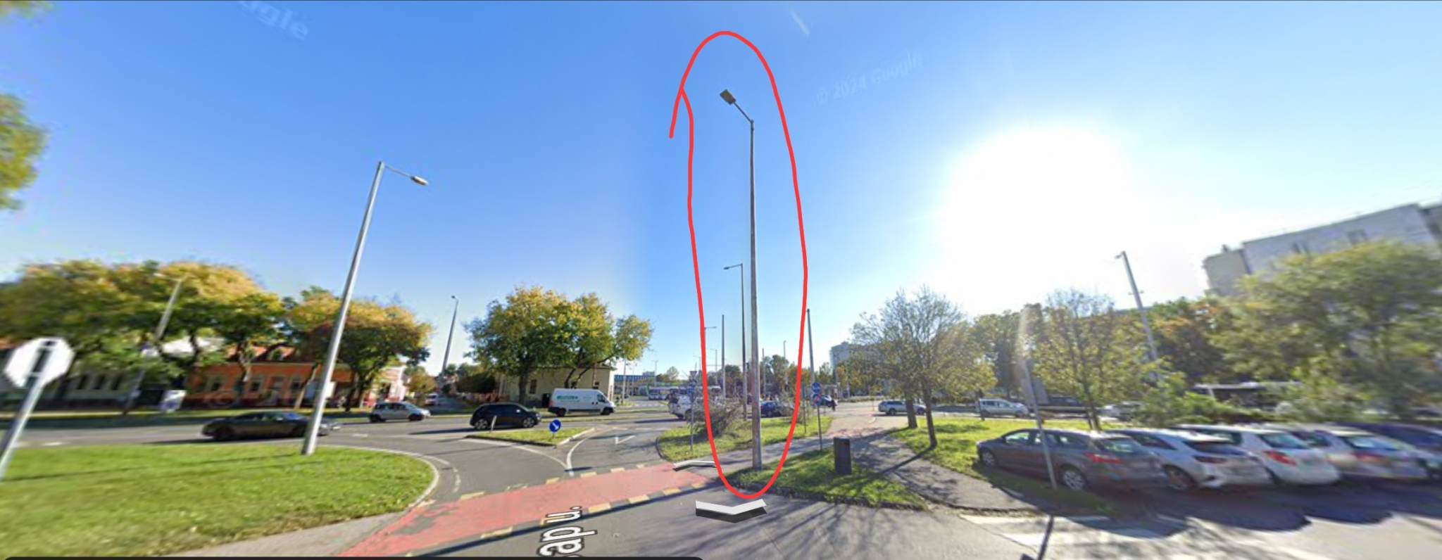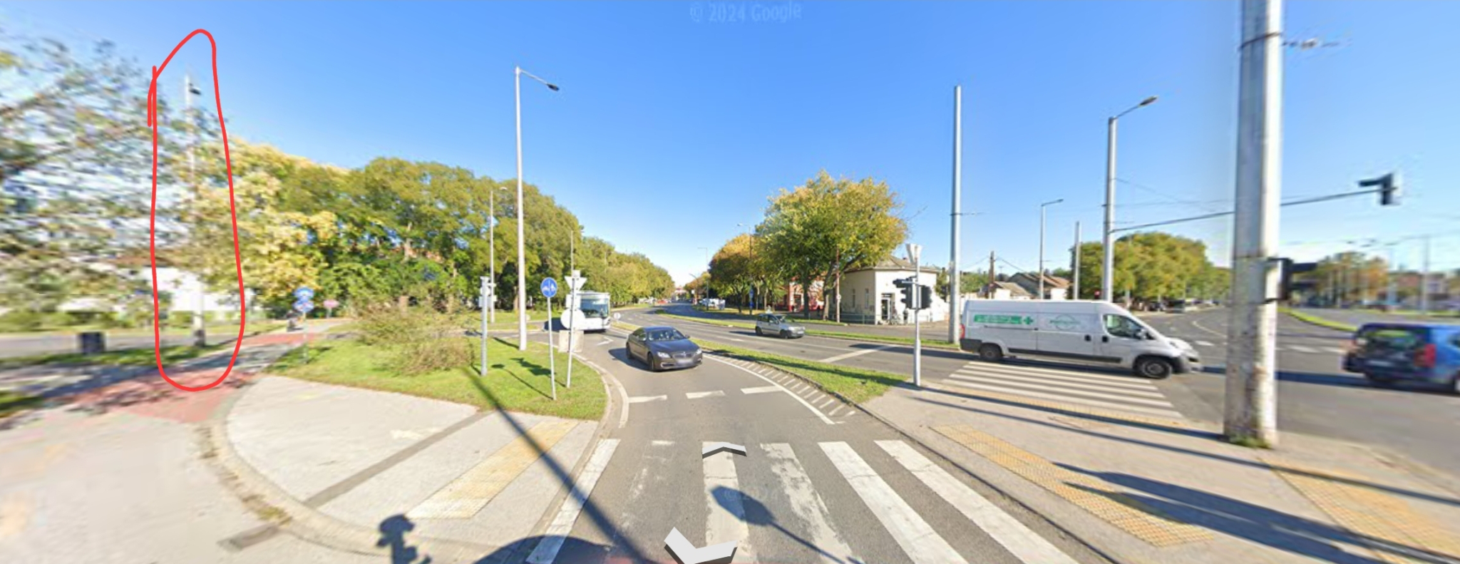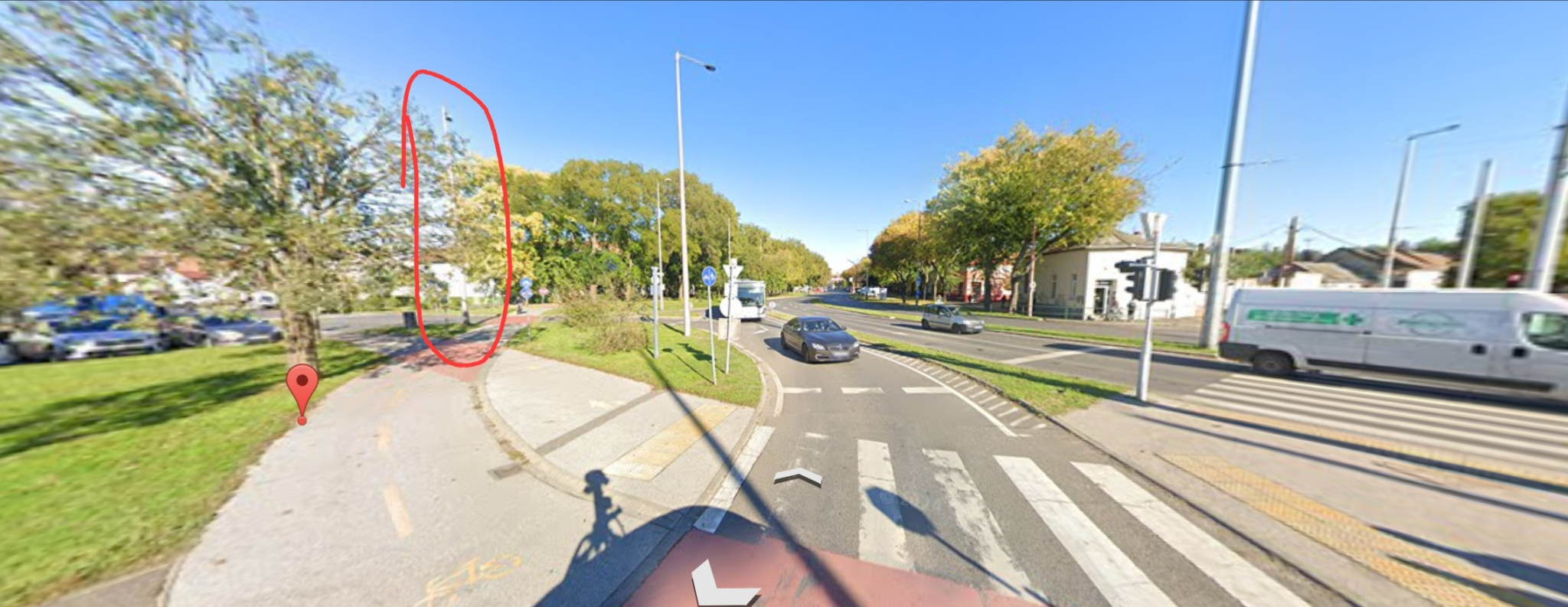 A Csap utca és a Hatvan utca kereszteződéséhez közel az úttesten a kerékpáros átvezetést megvilágító lámpaoszlop világítása nem működik.