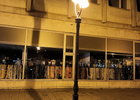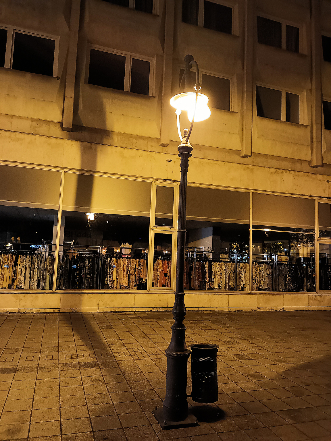 A Piac utca 11-15. szám alatti Hotel Aranybika üzletsorán a Háda üzlet előtti járdán lévő 3 lámpaoszlop közül a középső nem világít már napok óta.