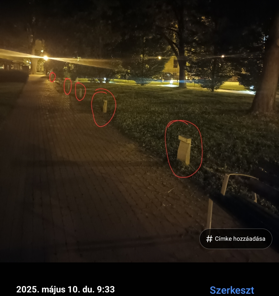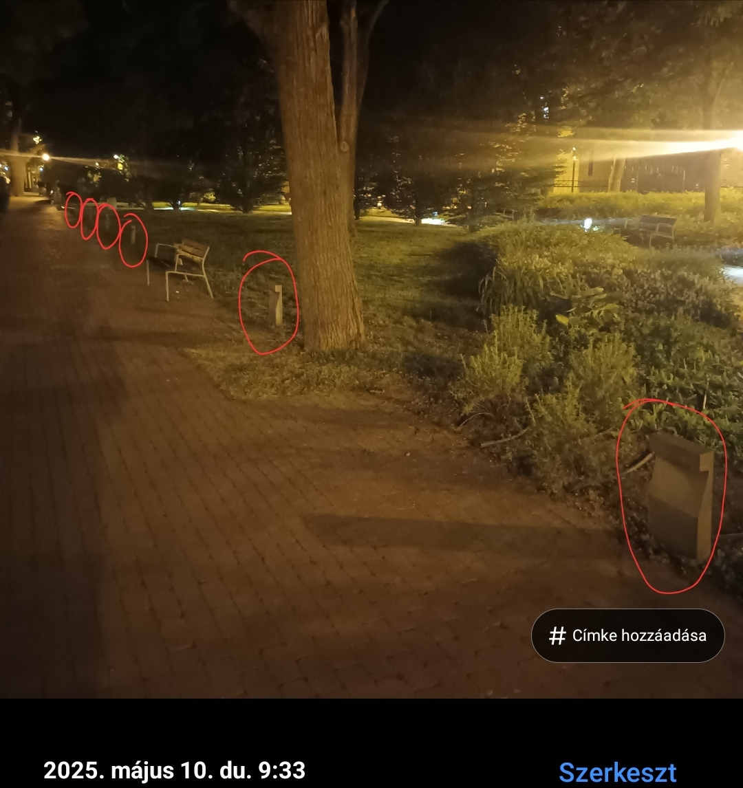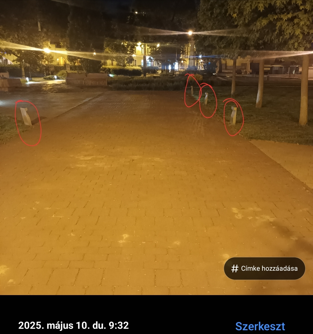 Mellékelek képeket a hibás lámpatestekről, hogy nagyjából merre fele találhatóak az Emlékkertben.
