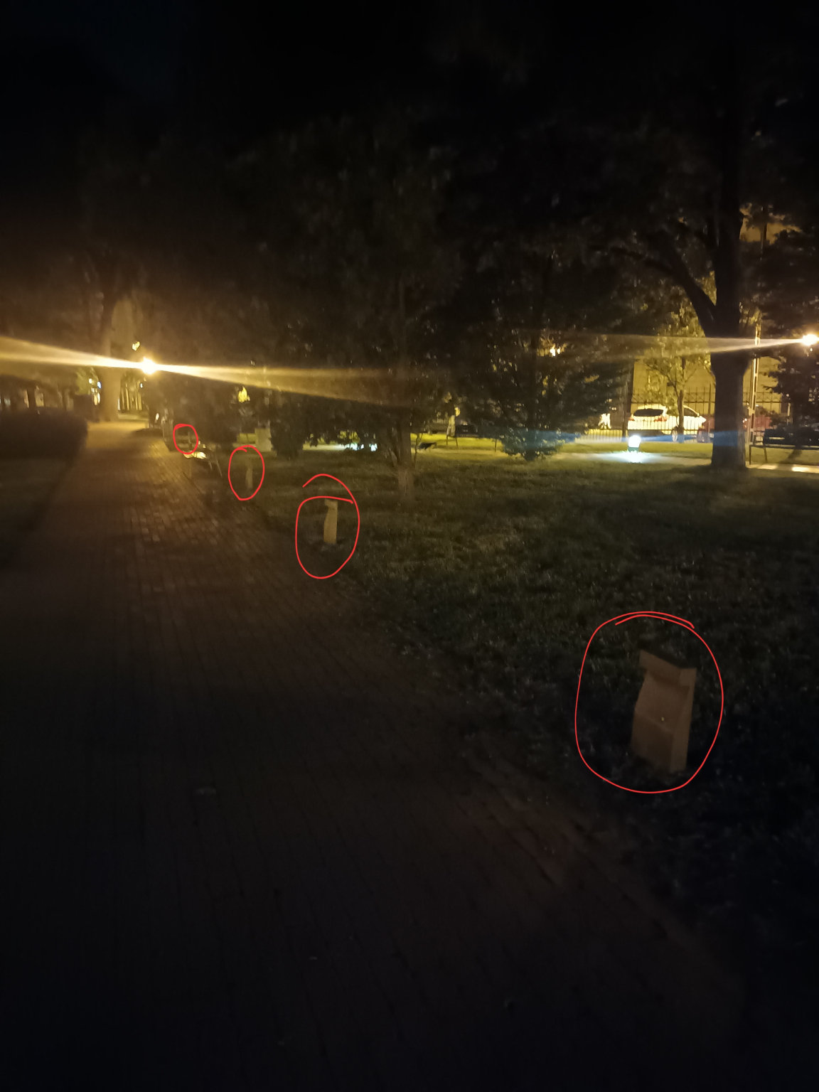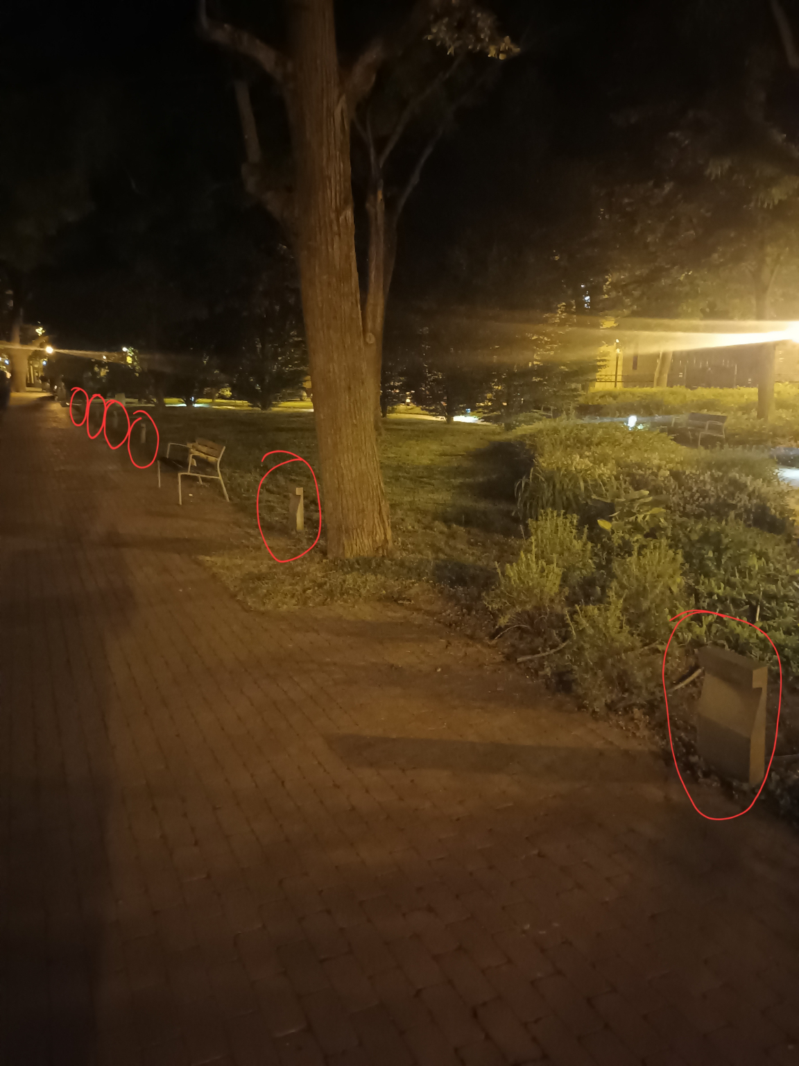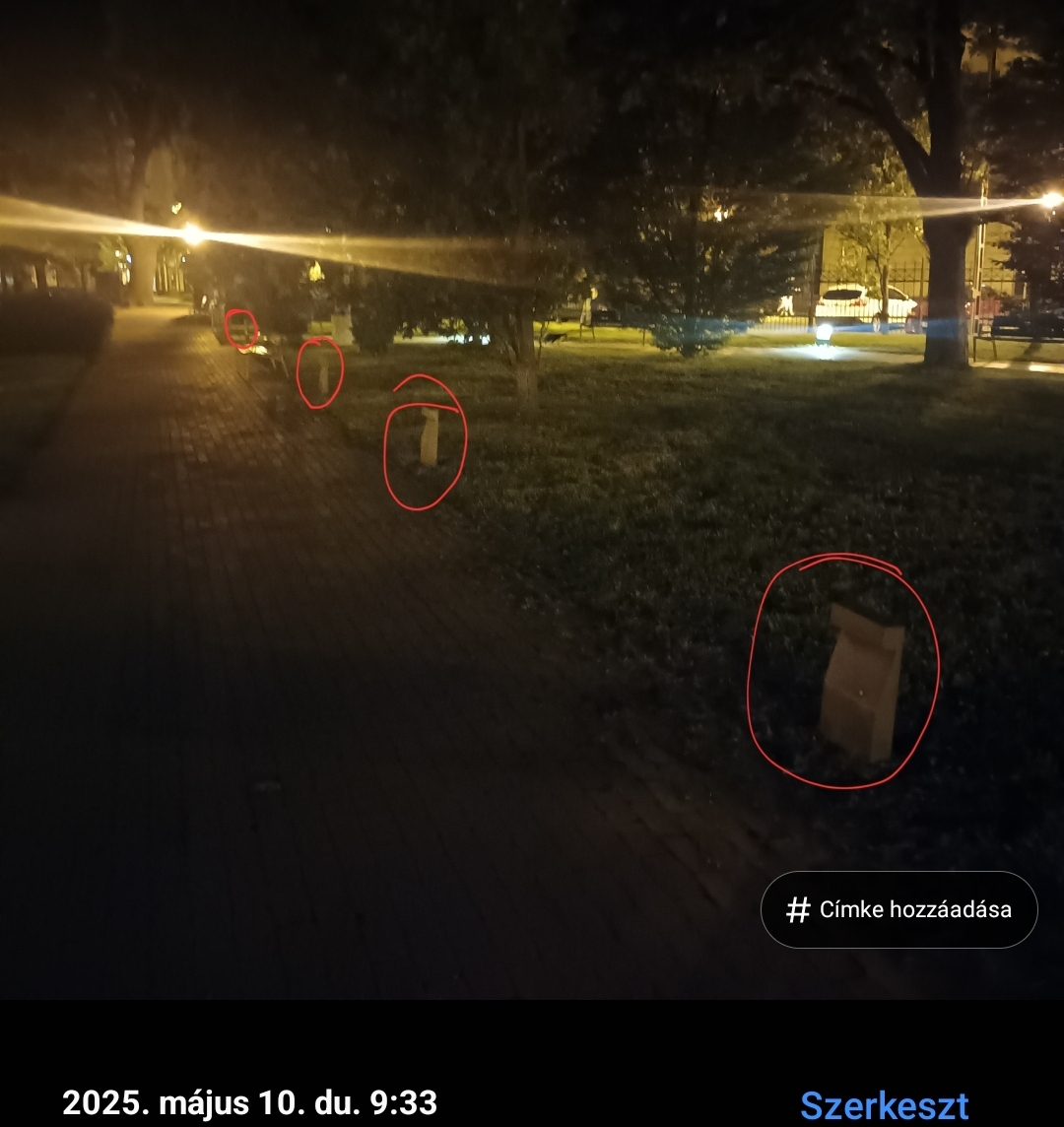 Mellékelek képeket a hibás lámpatestekről, hogy nagyjából merre fele találhatóak az Emlékkertben.