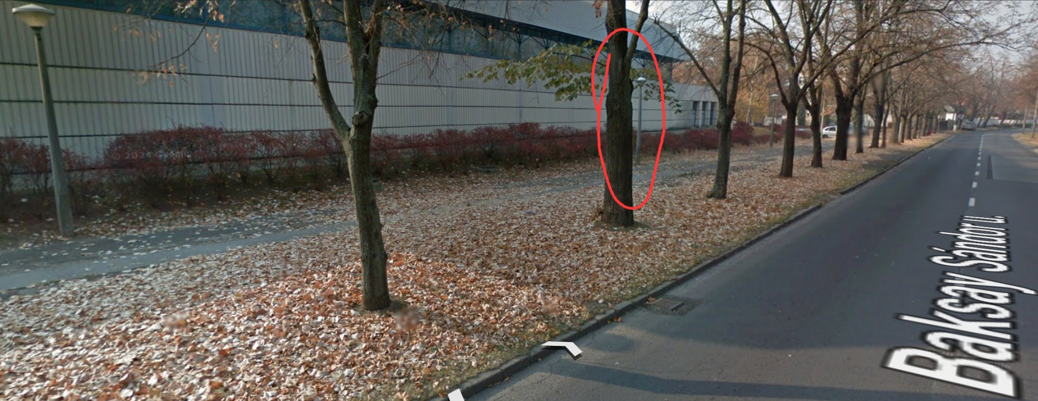 A Hódos Imre Rendezvény csarnok épületének a Baksay Sándor utcára néző oldalán lévő 3 lámpa oszlop közül a középsőnek pislog a világítása.