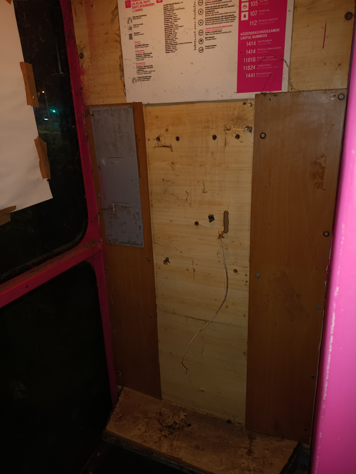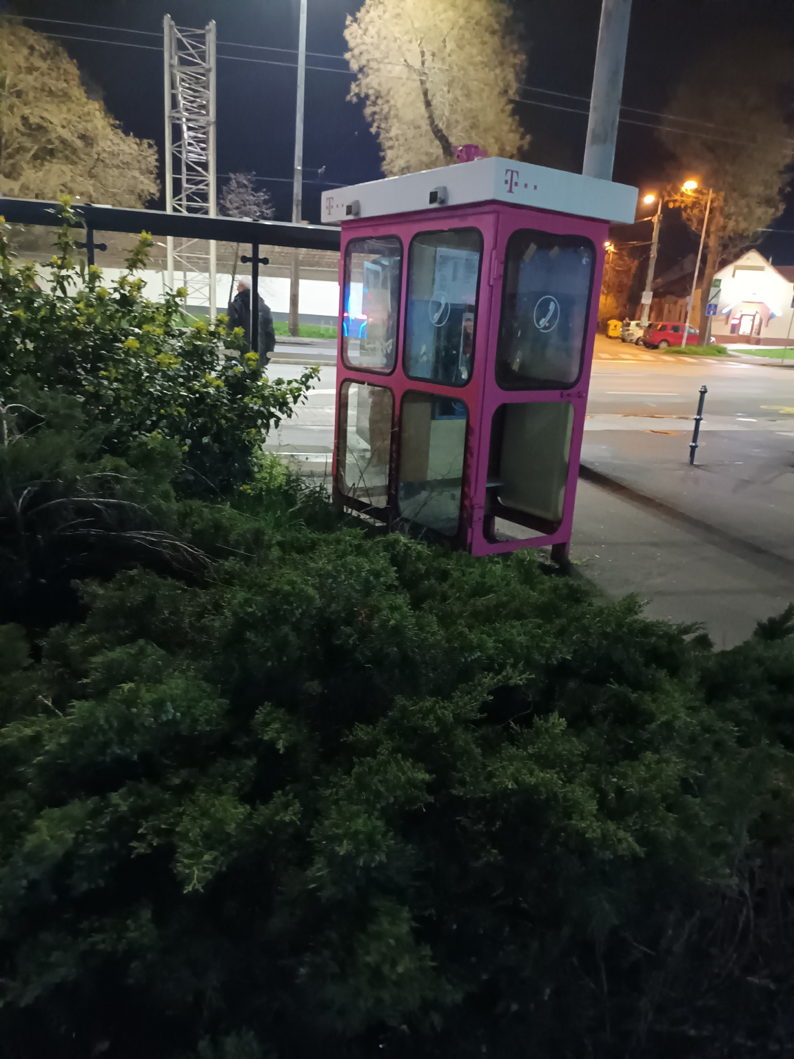 A Csapó utca 106. és a Csapó utca 102. lépcsőházak közelében a Bercsényi utca elnevezésű buszmegállóhely mellett lévő dupla nyilvános telefonfülke világítása nem működik és hiányzik az ablaka.