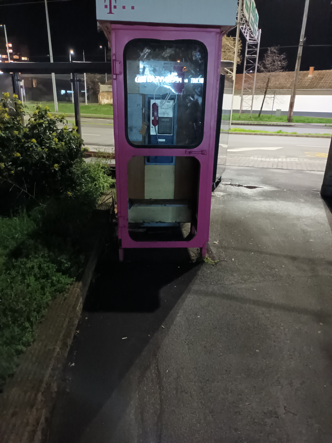 Szeretném kérni a telefonfülke világításának a kijavítását és a hiányzó ablaknak a pótlását.