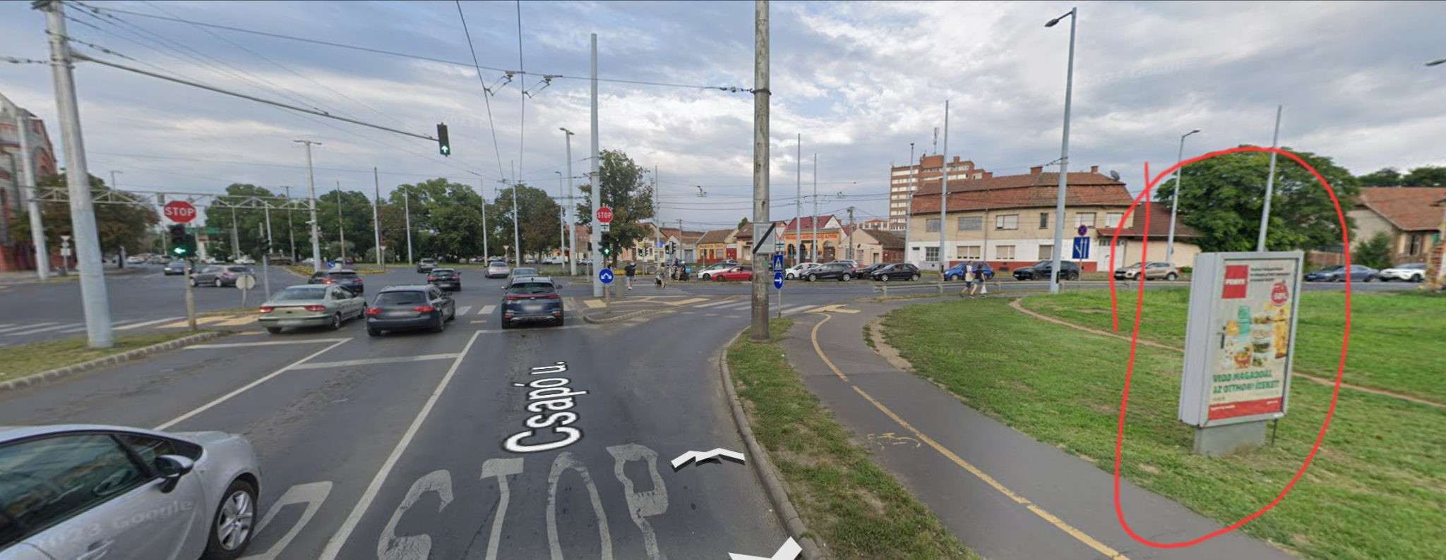 A Csapó utcáról a Rakovszky Dániel utcára kanyarodósáv és egy kerékpárút mellett és a 376-os számú oszlop közelében lévő Citylight világítása nem működik.