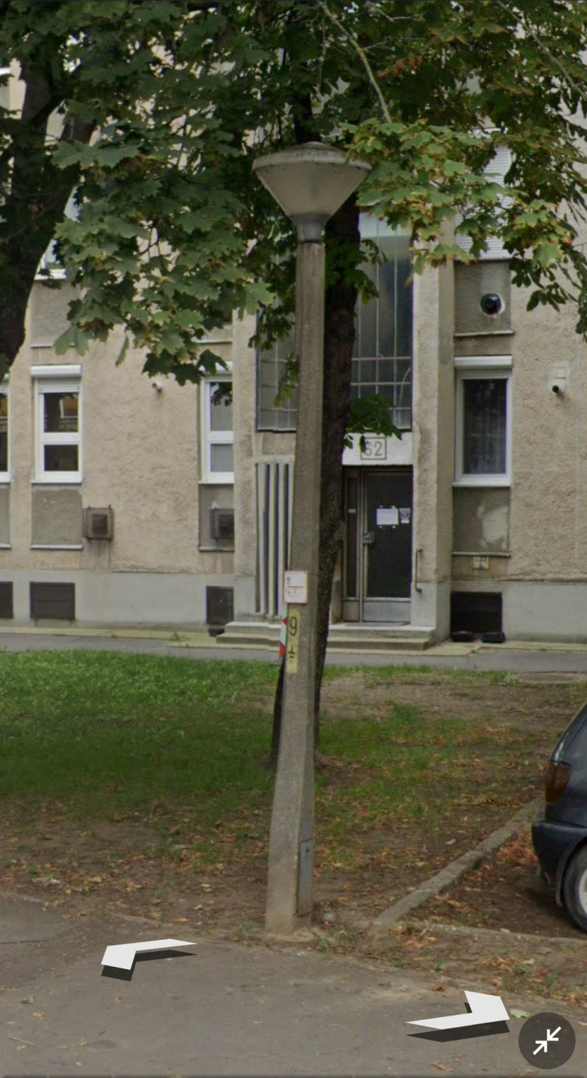 A Zöld utca 62. szám alatti lépcsőház közelében megtalálható 9-es számozású és földelési jellel feltüntetett lámpa oszlop világítása nem működik.