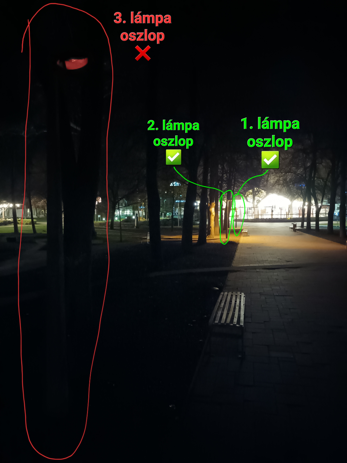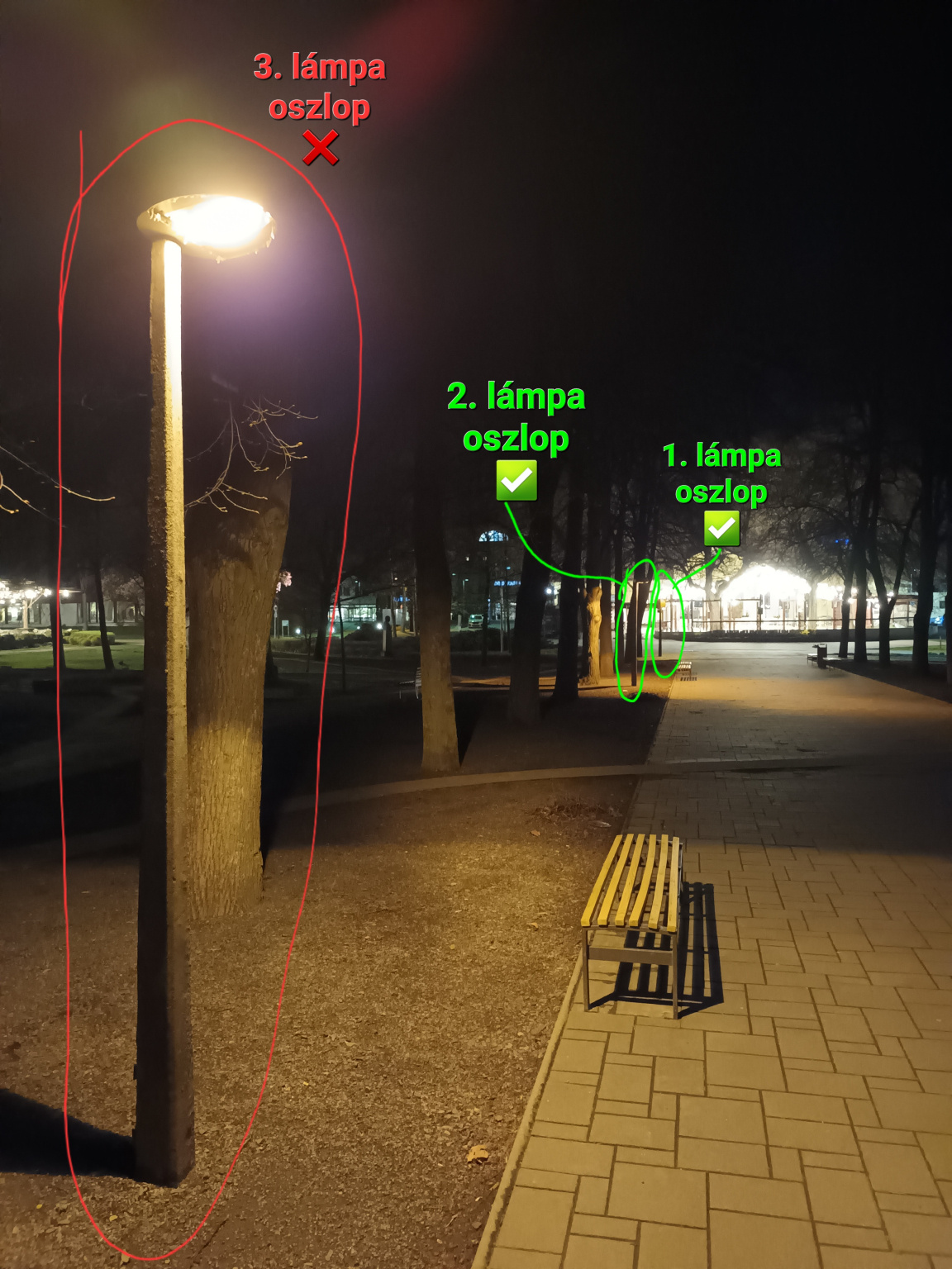 A Medgyessy sétánynak a Régi Vigadó és a Nagyerdei körút/Pallagi út közötti szakaszán a Régi Vigadó felől a Nagyerdei körút irányába elindulva a 3. lámpa oszlop világítása ki-bekapcsol.